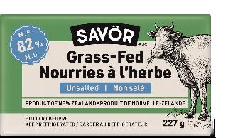Savor Grass-Fed Dairy Butter is crafted in New Zealand, where cows graze lush pastures yearround. Naturally GMO-free, it offers a pure, rich taste you can feel good about. Our unsalted butter features 82% butterfat for unmatched creaminess and depth of flavour.