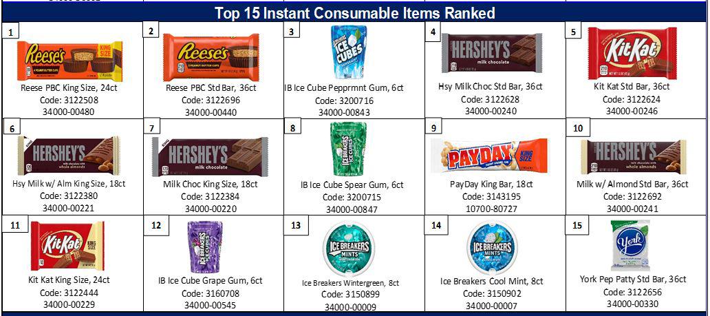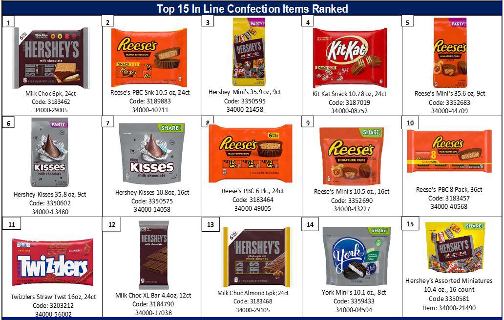 Review and order missing key Hershey Candy items from the Hershey Distribution Void Program.