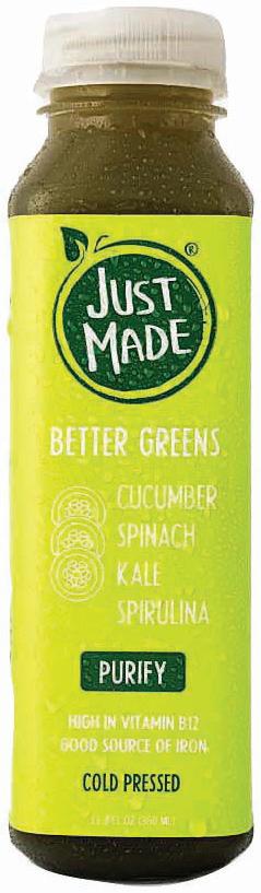 Better Greens—Cucumber Juice, Pear Juice, Kale, Celery, Spinach, Lemon Juice, Ginger Juice, Mint, Lime Juice, Organic Spirulina.