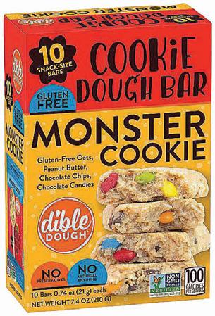 Monster Cookie—Natural Peanut Butter (Dry Roasted Peanuts), Gluten Free Oats, Butter (Cream, Salt), Sugar, Brown Sugar (Sugar Molasses), Natural Semisweet Chocolate Chips (Sugar, Chocolate Liquor, Cocoa Butter, Soy Lecithin, Vanilla Extract), Whole Grain Gluten Free Oats, Natural Semi Sweet Mini Gems (Dark Chocolate (Sugar, Chocolate Liquor, Cocoa Butter, Soy Lecithin [An Emulsifier], Vanilla) Sugar, Coloring (Includes Spirulina Extract, Turmeric Oleoresin, Beet Juice, Beta Carotene) Gum Acacia, Corn Syrup, Carnauba Wax), Natural Vanilla Extract, Less Than 2% Of Salt.