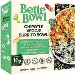 Bur rito Bowl, Chipotle Veggie—Jasmine Rice, Water, Edamame, Yellow Corn, Cheddar Cheese (Pasteurized Milk, Cheese Cultures, Salt, Enzymes, Annatto), Asadero Cheese (Pasteurized Milk, Cheese Culture, Salt, Enzymes), Yams, Jalapeño Pepper, Black Beans, Cilantro, Chipotle (Chipotle Peppers, Water, Tomato Puree, Vinegar, Salt, Sugar, Garlic, Canola Oil), Vine Ripened Tomatoes, White Onion, Avocado Oil, Sea Salt, Garlic, Chipotle Pepper Powder, Black Pepper, Onion Powder, Ground Cumin Seeds, Oregano.