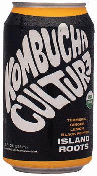 Island Roots—Kombucha Culture (Water, Bacteria, Yeast), Black Tea, Green Tea, Cane Sugar, Turmeric, Ginger, Lemon, Black Pepper.