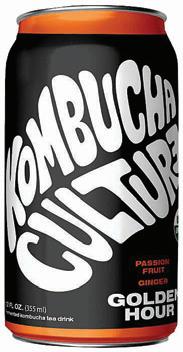 Golden Hour—Kombucha Culture (Water, Bacteria, Yeast), Black Tea, Green Tea, Cane Sugar, Passion Fruit, Ginger.