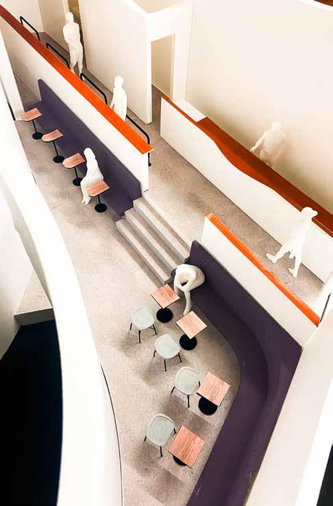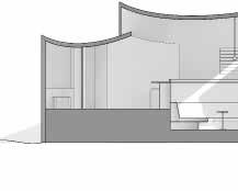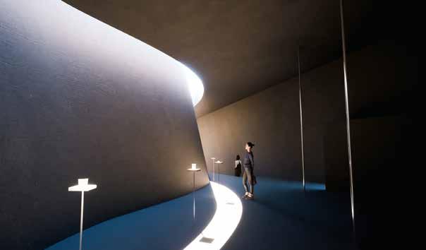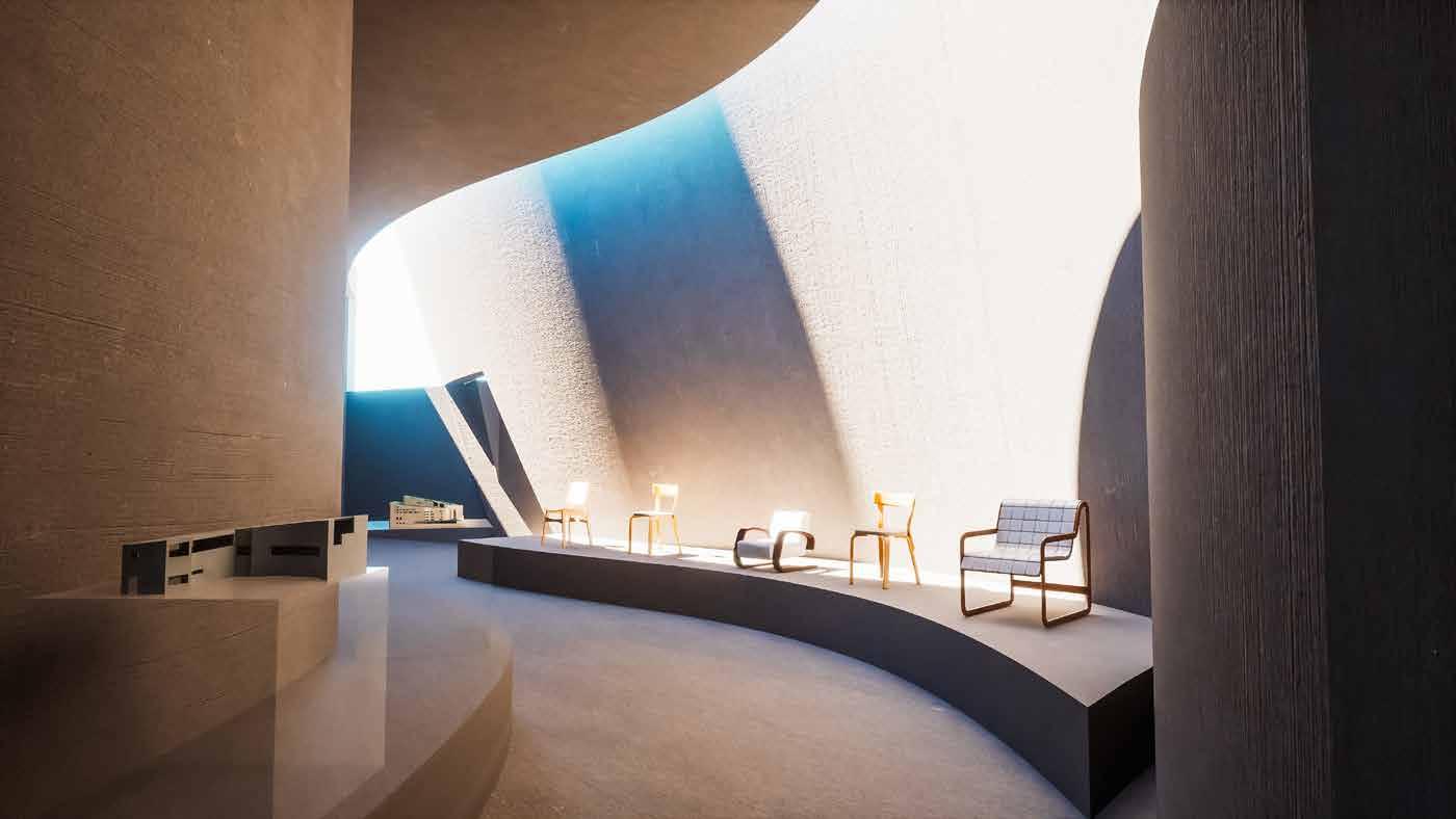 アアルトベースなどのガラス器を展示するギャラリーと 家具や建築模型を展示するギャラリー、自然光を用いた 2つのギャラリー空間を大きな曲面壁を用いて生み出し た。