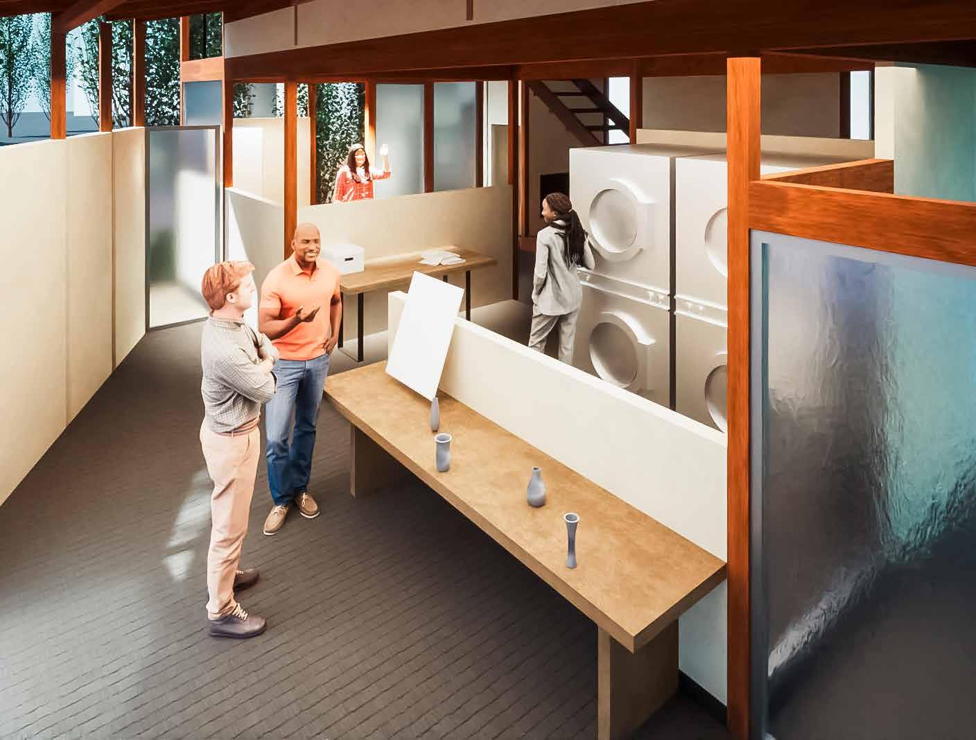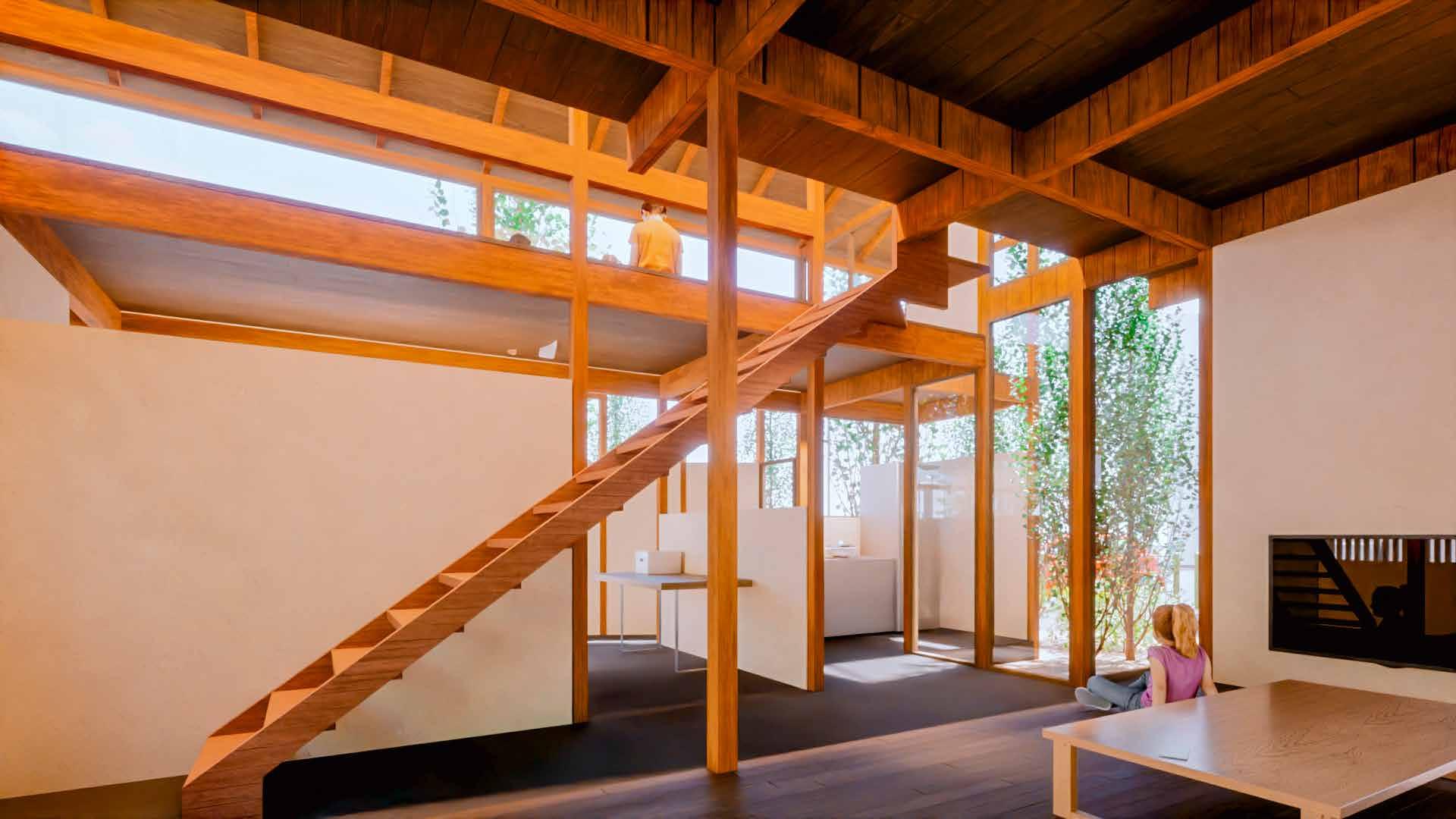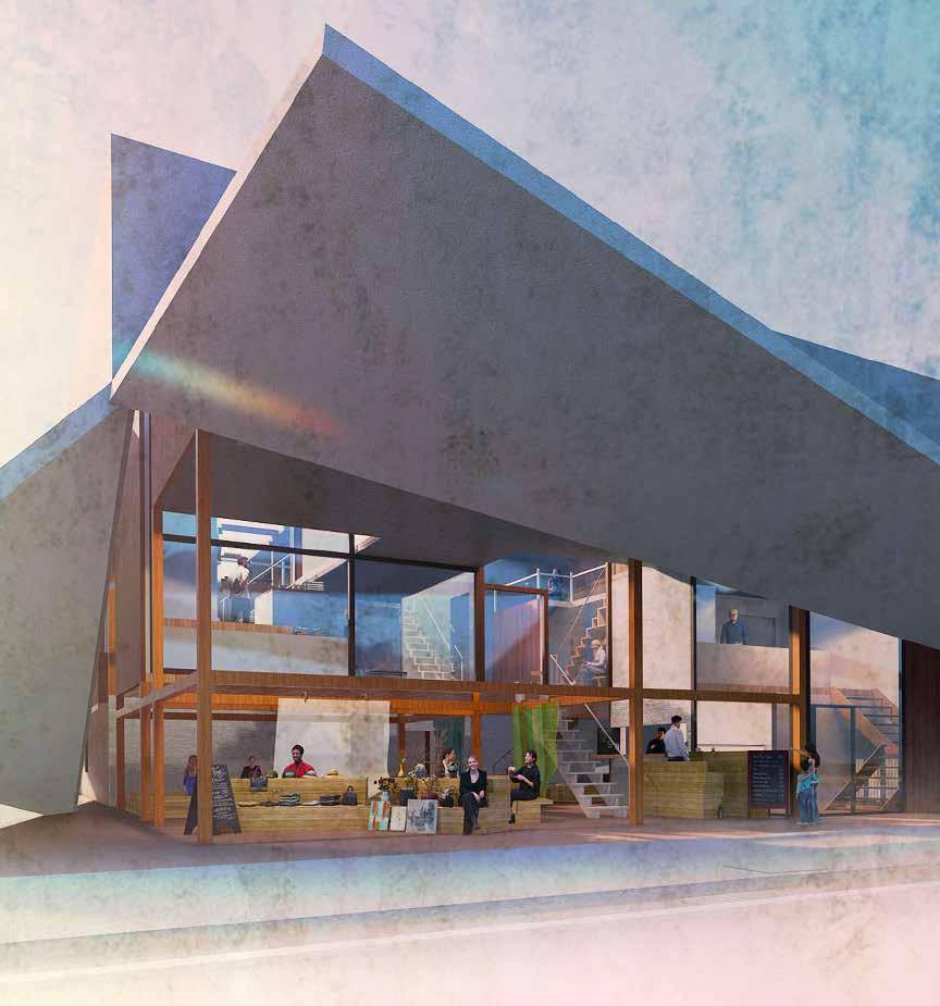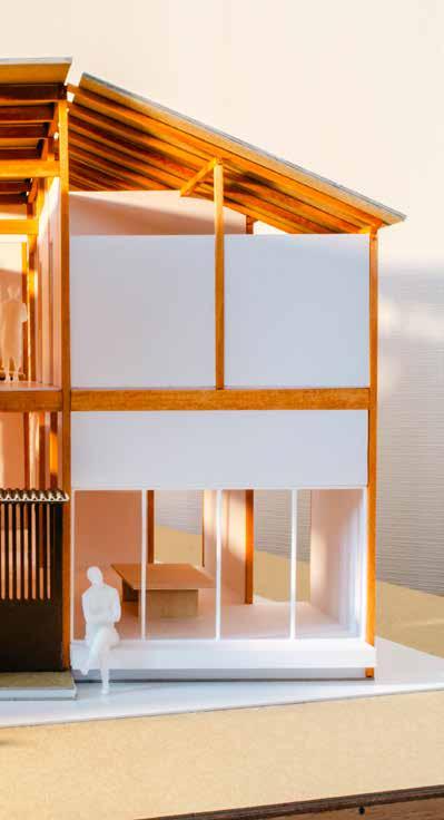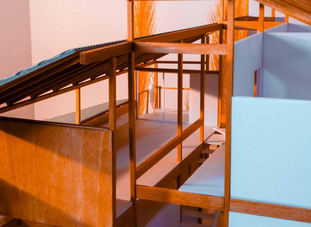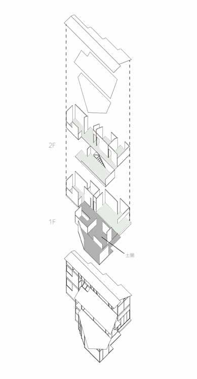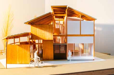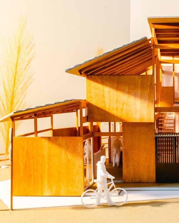 「町家や商家が連なる通り」と「花屋や茶屋が連なる通り」 の狭間にあるこの土地に、町家の要素を取り入れた住宅 を設計した。住宅の中に伸びる通り土間を中心に“ケ(日 常)”の場である水回りやリビングを設け、住人や地域 住民の“ハレ”の場となるような貸出スペースを地続き に隣接させる。そして水回りの一つである洗濯場を開く。 ハレとケのシェアする2つの場を通して、住人と地域 住民、地域住民同士のつながりを生み出せないかと思い 制作した作品。