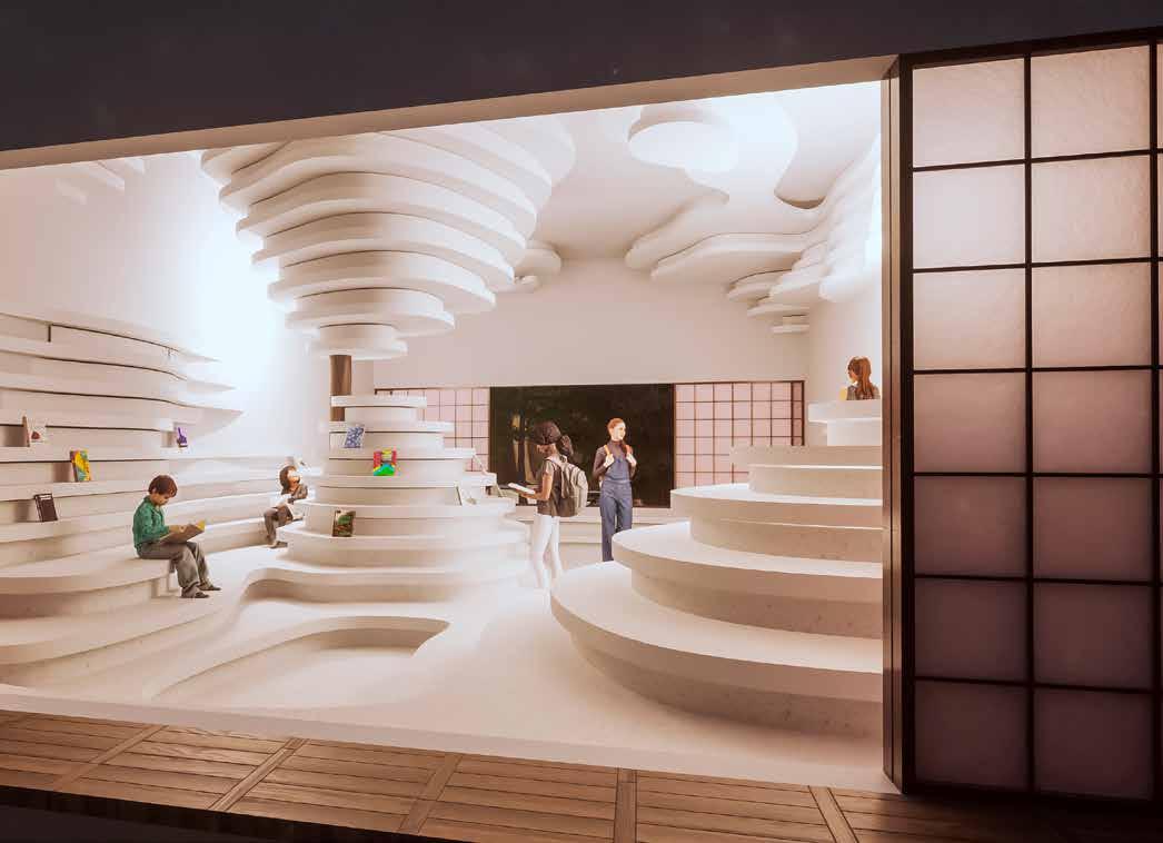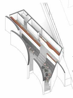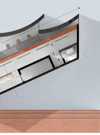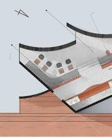 この円弧のずれにより生まれる隙間を屋根面にも反映さ せることで、ハイサイドライトとして自然光を取り入れ る採光を考えた。