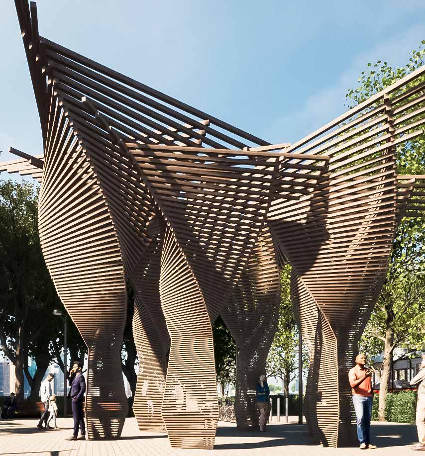計画地は天王洲アイルの顔と呼ぶべき場所であったた め、遠くから見てわかるマッシブなファサードを意識し、 デザインした。