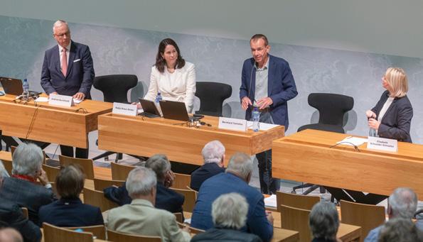 Dies diskutieren Staatssekretärin Martina Hirayama, Regierungsrätin Monica Gschwind, Vizerektor Prof. Thomas Grob und Ständerat Benedikt Würth am Herbstanlass 2024.
