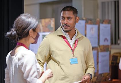 Anschliessend hatten die Alumnae und Alumni Gelegenheit, das Europainstitut näher kennenzulernen. Der neue Direktor Prof. Dr. Corey Ross erläuterte, wie das Institut die Beziehungen zwischen der Schweiz und Europa im globalen Kontext untersucht. Vier Nachwuchsforschende zeigten anhand ihrer Projekte, was das in der Praxis bedeutet. Damit auch Studierende aus dem globalen Süden die Austauschabkommen ihrer Heimuniversitäten mit der Universität Basel nutzen können, richtet das Europainstitut mit Unterstützung des Annual Giving 2023 einen speziellen Mobilitätsfonds ein.