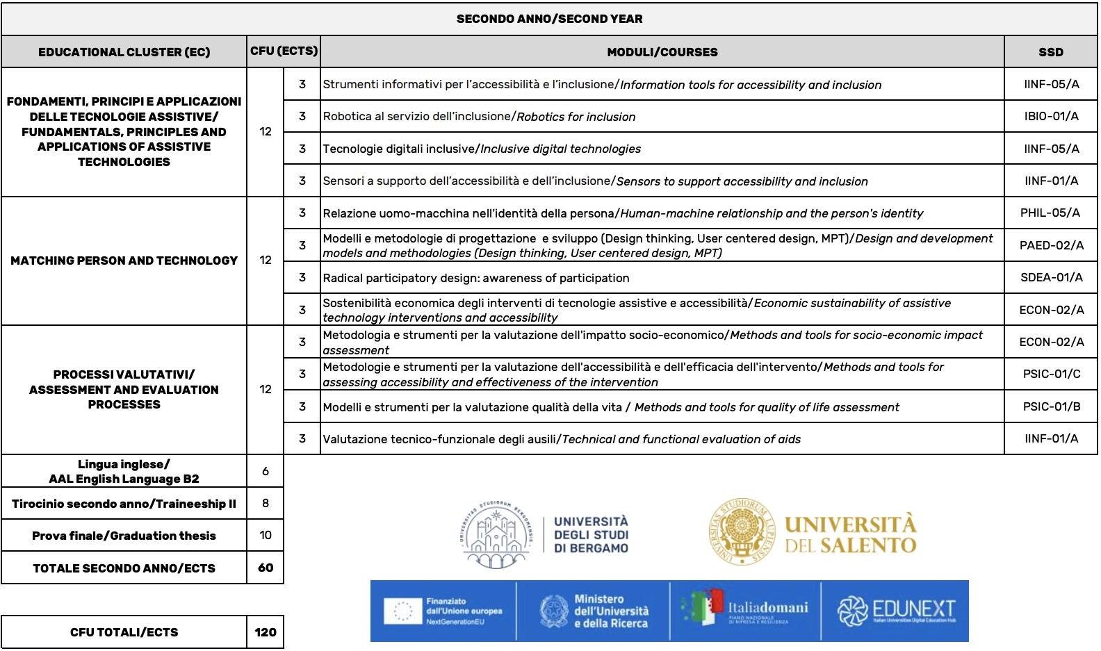 La Laurea Magistrale in Progettazione di Contesti di Vita Accessibili ed Inclusivi è inserito nell’oferta formativa dei corsi «PA 110 e lode» dell’Università degli studi di Bergamo