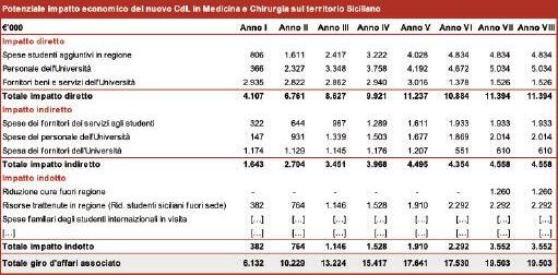 riale, tali spese rappresentano dunque l’impatto indiretto del nuovo Corso di di Laurea e si suppone si aggirino intorno a € 5 milioni annui di giro d’affari