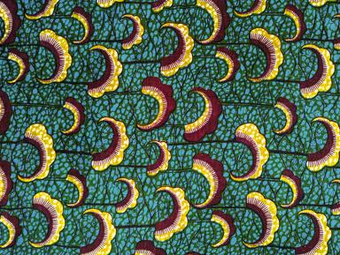 On hot days the Aunties hang out their clothes - which they call buba and wrapper - to dry in the garden. Their clothes are brightly coloured and covered in patterns like these