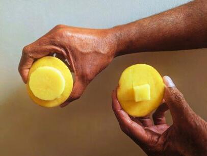 Cut the potato in half and carve two simple shapes into each half. Make sure that children are supervised when using a knife.
