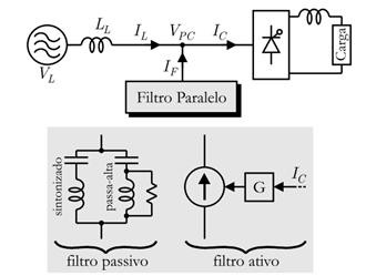 A metodologia proposta foi implementada computacionalmente e foi utilizado o sistema teste de 13 Barras do IEEE [14]. A Figura 7 ilustra o diagrama representativo de um filtro ativo em paralelo (shunt) e o sistema teste de 13 barras
