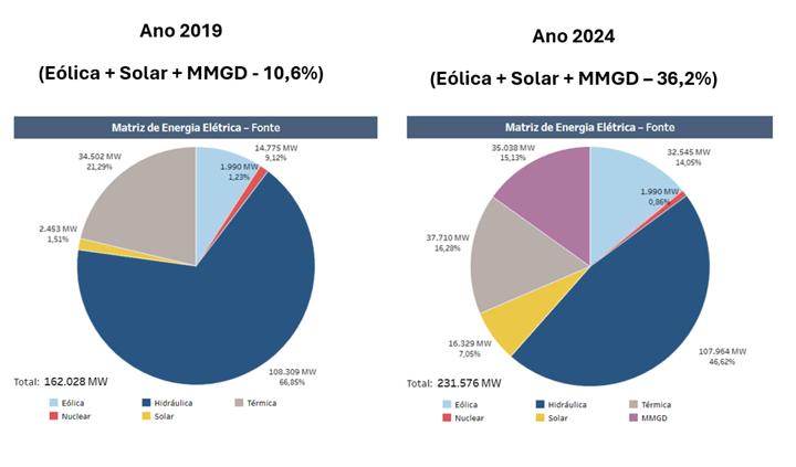 No que diz respeito à inserção de fontes renováveis e transição energética, o Brasil possui um papel de destaque no cenário mundial, tendo sua matriz elétrica com uma capacidade instalada de 83% em 2024, conforme dados do Operador Nacional do Sistema (ONS) Nesse sentido, cabe ressaltar que fontes limpas e renováveis nessa estatística incluem hidrelétricas em geral, eólica, solar e biomassa. Como pode ser Nesse cenário complexo e desafiador, as fontes renováveis de energia ganham cada vez mais destaque nas pautas climáticas e de sustentabilidade discutidas recorrentemente nas organizações mundiais. Em um passado não muito distante, o desafio para um avanço consistente das fontes renováveis estava, em grande parte, relacionado à ausência de alternativas tecnológicas que fossem técnica e economicamente viáveis para sua expansão. Com isso, década atrás, a viabilidade econômica da substituição das fontes de energia poluentes, como por exemplo, termelétricas movidas a óleo e carvão era um desafio que necessitava da superação de barreiras tecnológicas