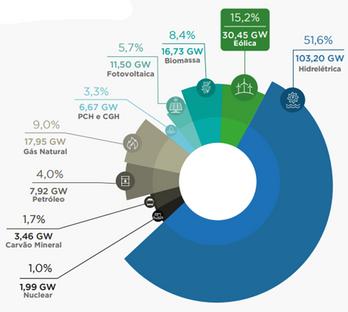 Para mitigar esse cenário, o Operador Nacional do Sistema Elétrico (ONS) recorreu às usinas termelétricas como solução emergencial. No entanto, o alto custo operacional e os impactos ambientais associados à queima de combustíveis fósseis tornaram crucial a transição para fontes de energia mais limpas. Nesse contexto, a energia eólica se destaca, contribuindo atualmente com cerca de 30,45 GW da geração total do país (Fig.1), registrando a participação de 15,2% na Matriz Elétrica Brasileira em 2023
