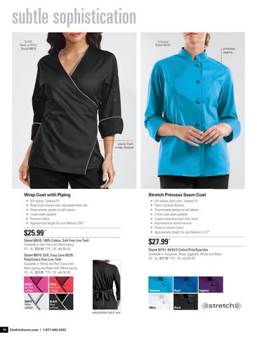 Style# 88510: Soft, Easy Care 65/35 Poly/Cotton Fine Line Twill Available in White and Rich Coral with Black piping and Black with White piping. XS - XL: $25.99 *2X - 3X: add $4.00 HPBLA Hot Pink w/Black