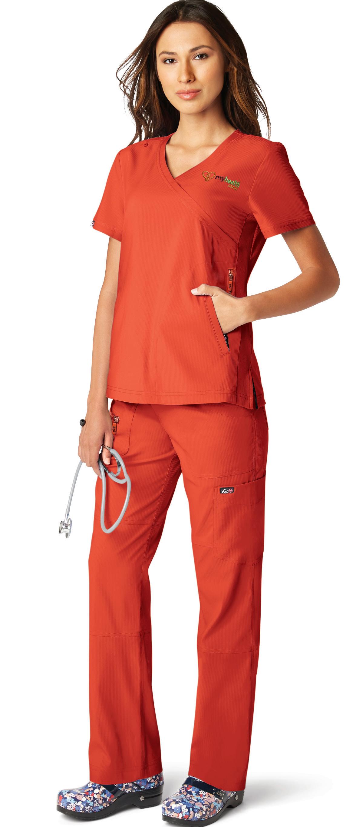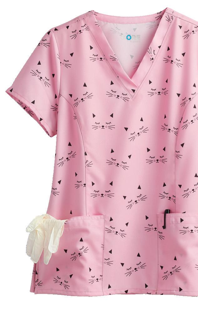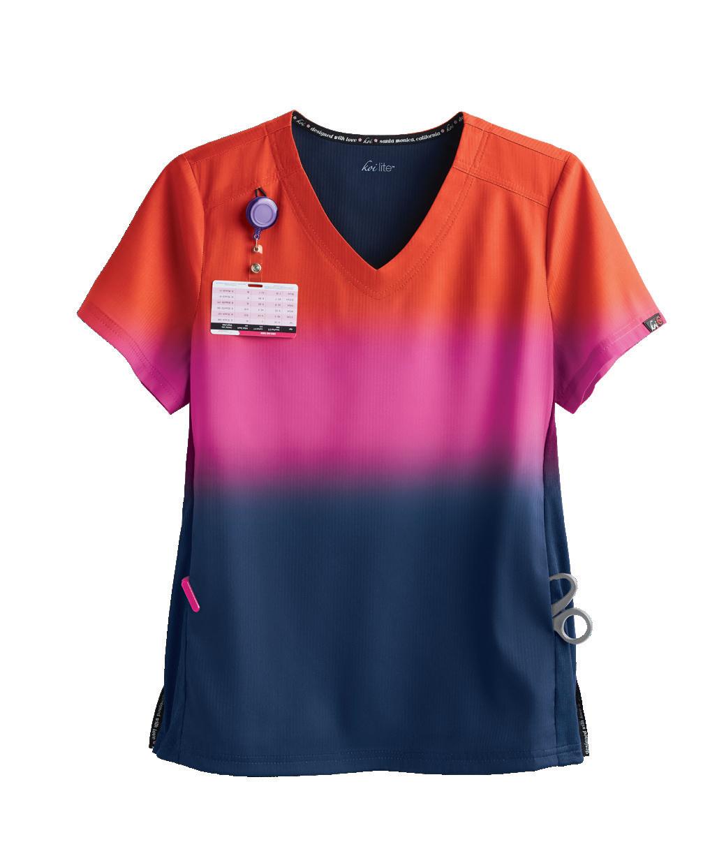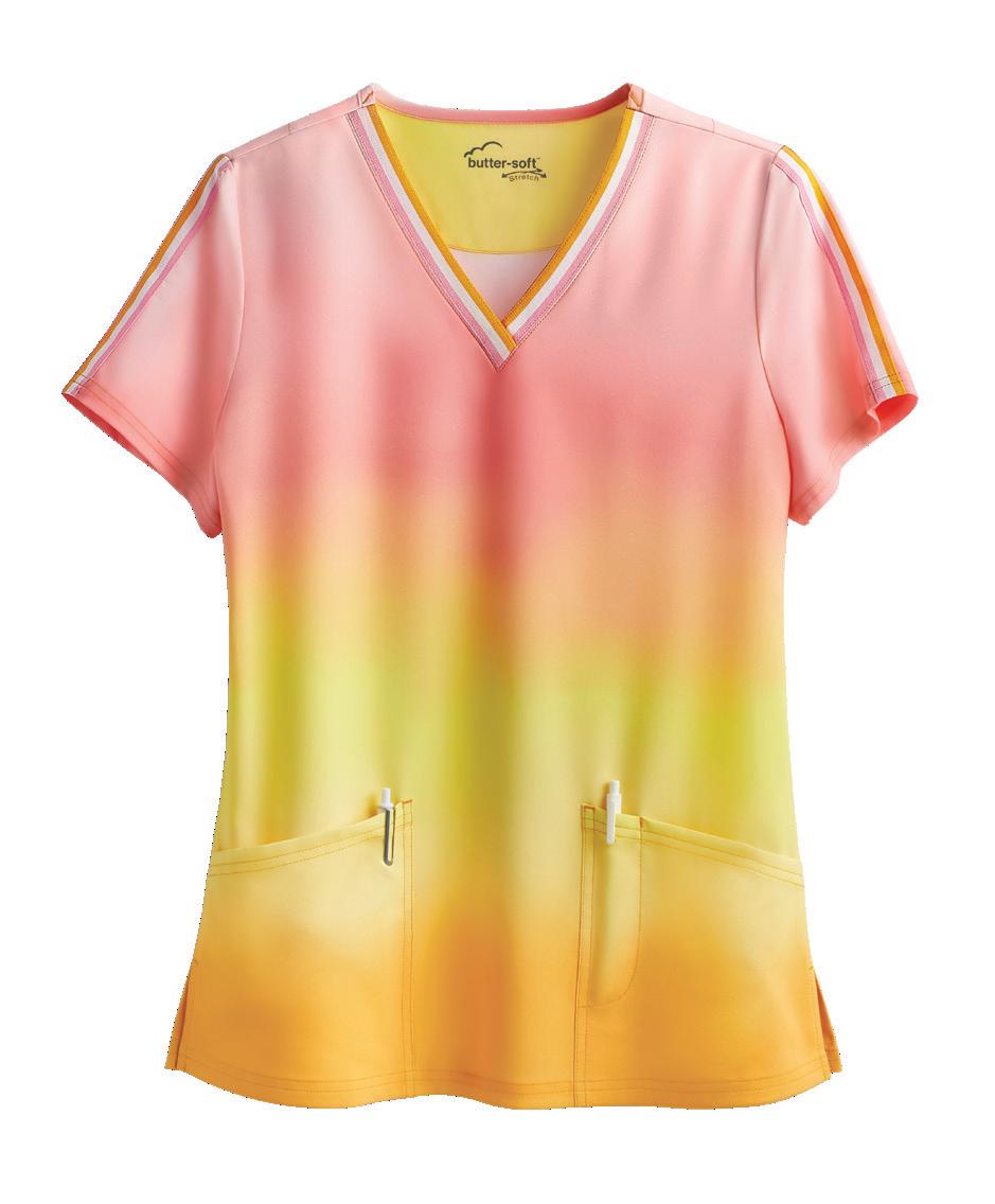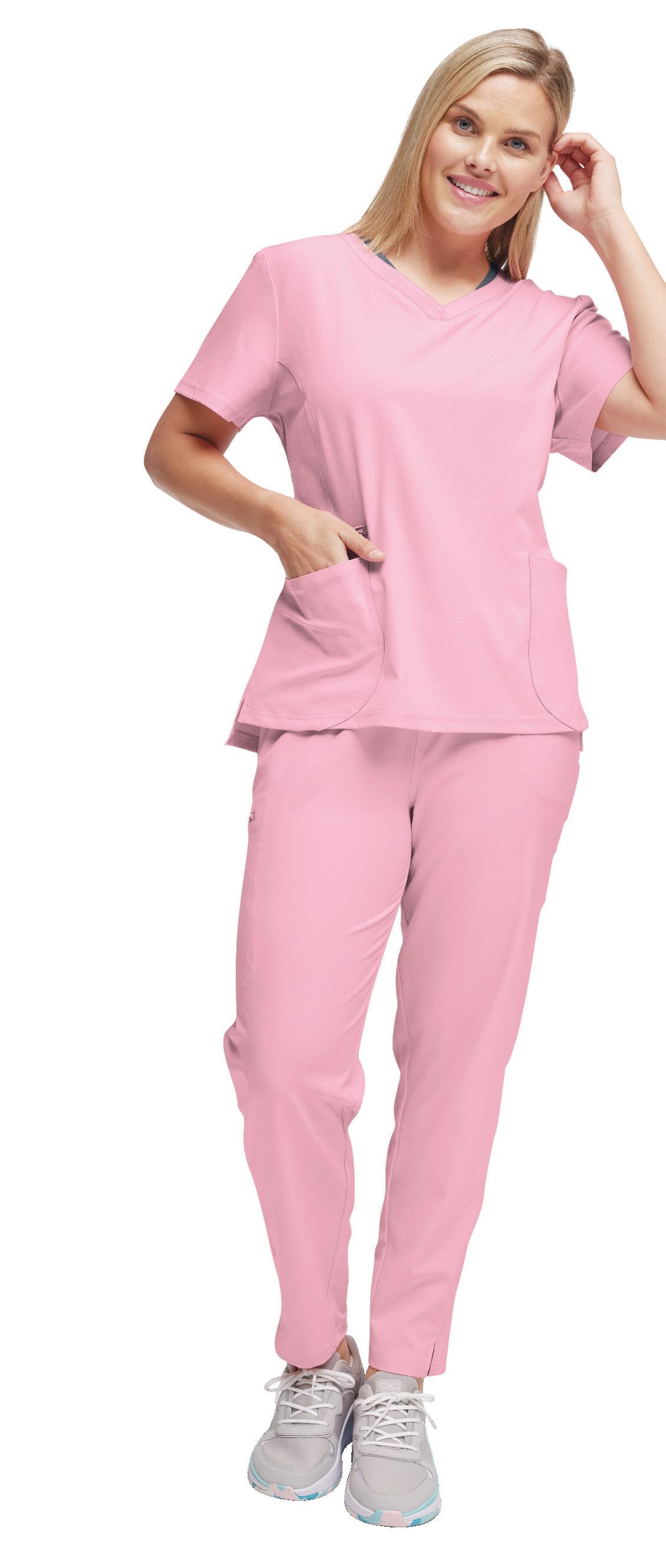 C. NEW PARTY TIME GUAVA FIZZ TUCKIN TOP SALE Modern fit, V-neck, 1 pocket, back darts, ID loop. Coordinates with Guava Fizz, Eucalyptus Leaf, Apricot Sunset, Lemon Sherbet, Black, and White. TS 452 PTGF X XS-5X $22.99-$27.99 XXS-XL $18.39 , 2X-3X $20.79, 4X-5X $22.39