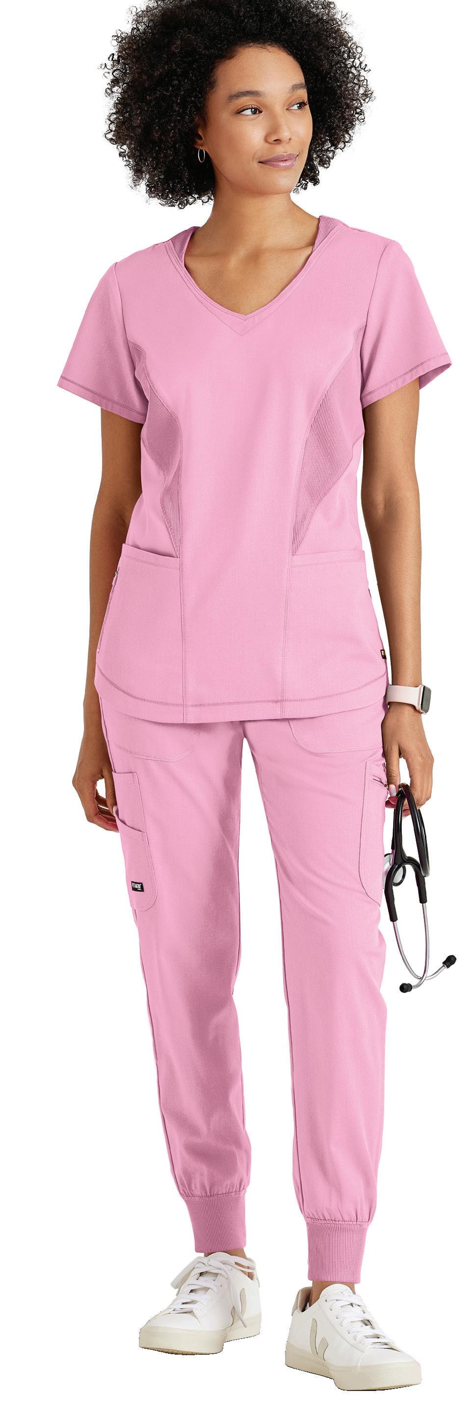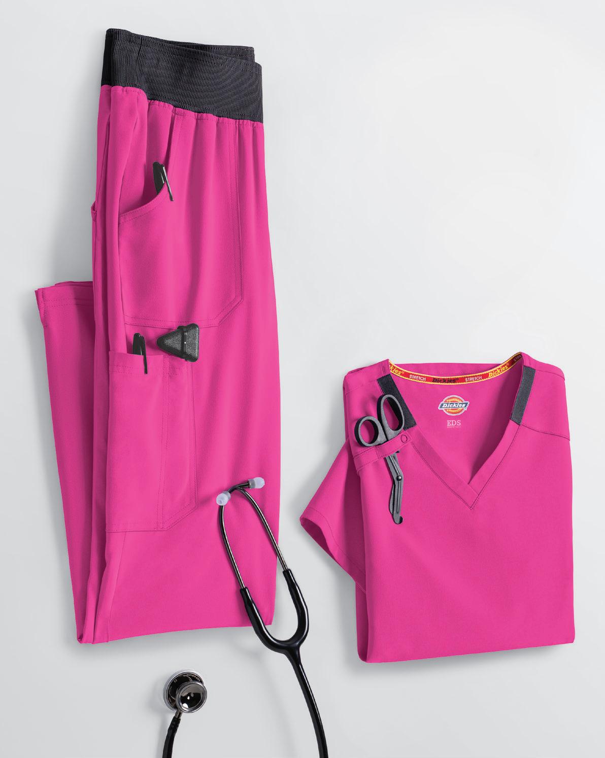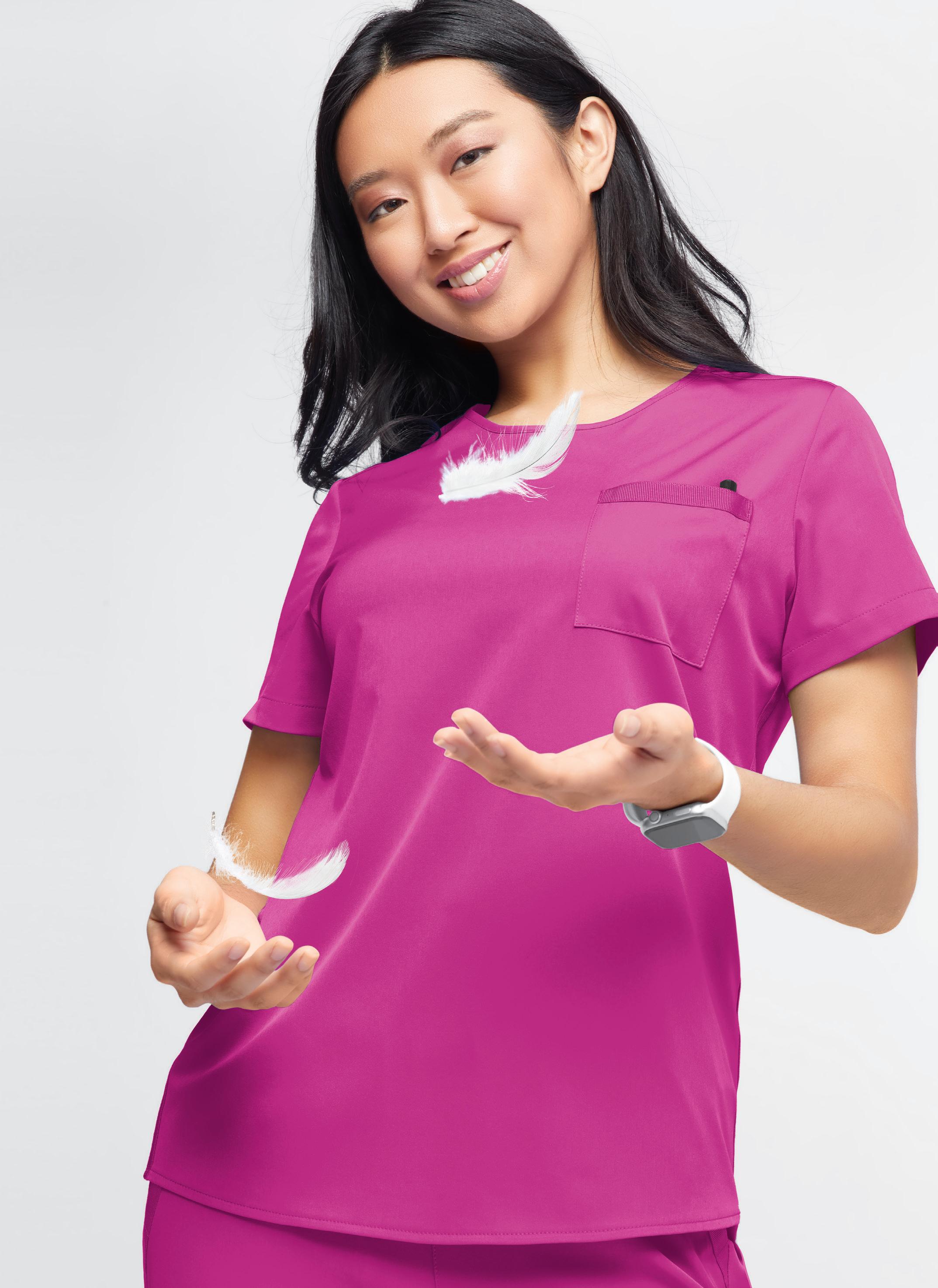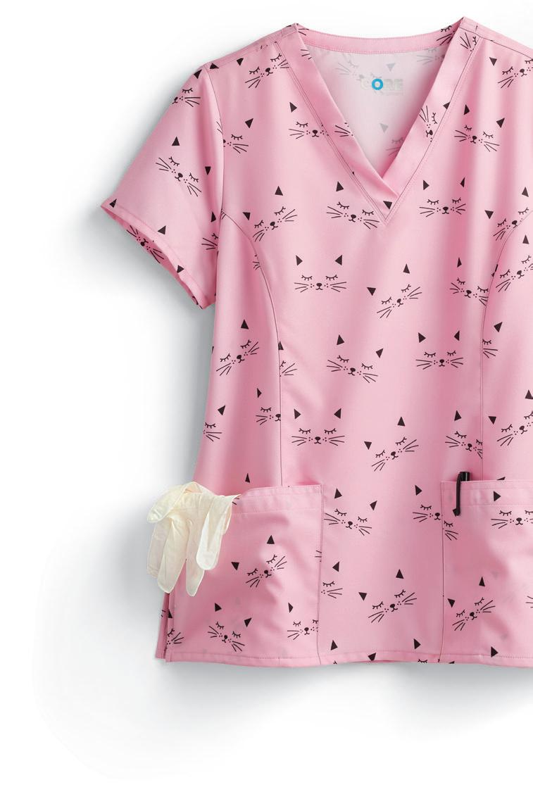 C. NEW PARTY TIME GUAVA FIZZ TUCKIN TOP SALE Modern fit, V-neck, 1 pocket, back darts, ID loop. Coordinates with Guava Fizz, Eucalyptus Leaf, Apricot Sunset, Lemon Sherbet, Black, and White. TS 452 PTGF X XS-5X $22.99-$27.99 XXS-XL $18.39 , 2X-3X $20.79, 4X-5X $22.39