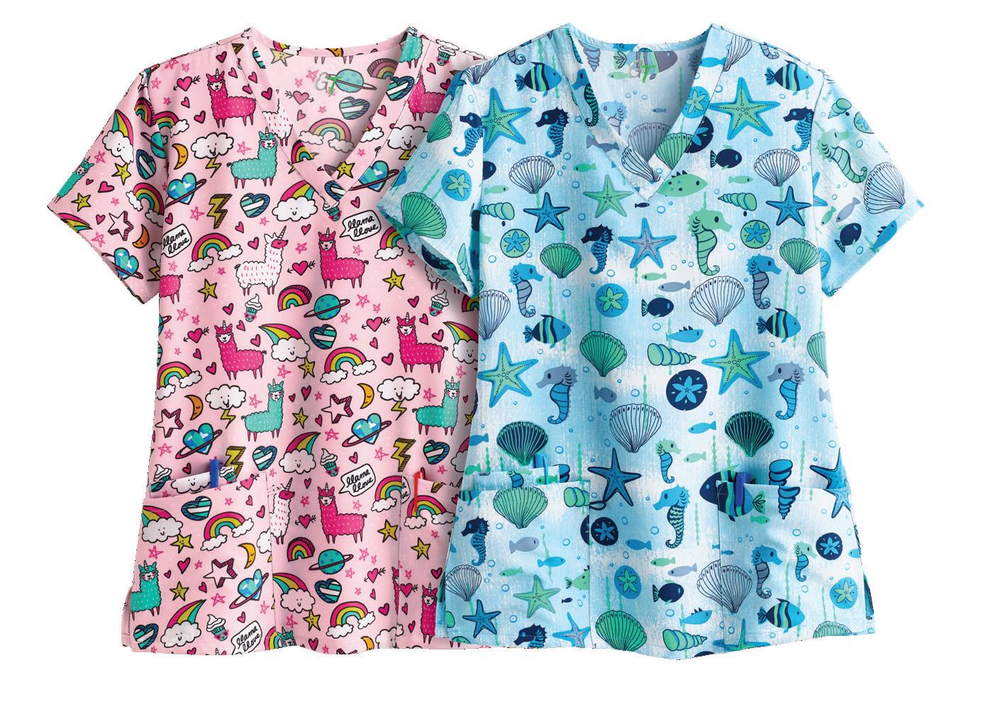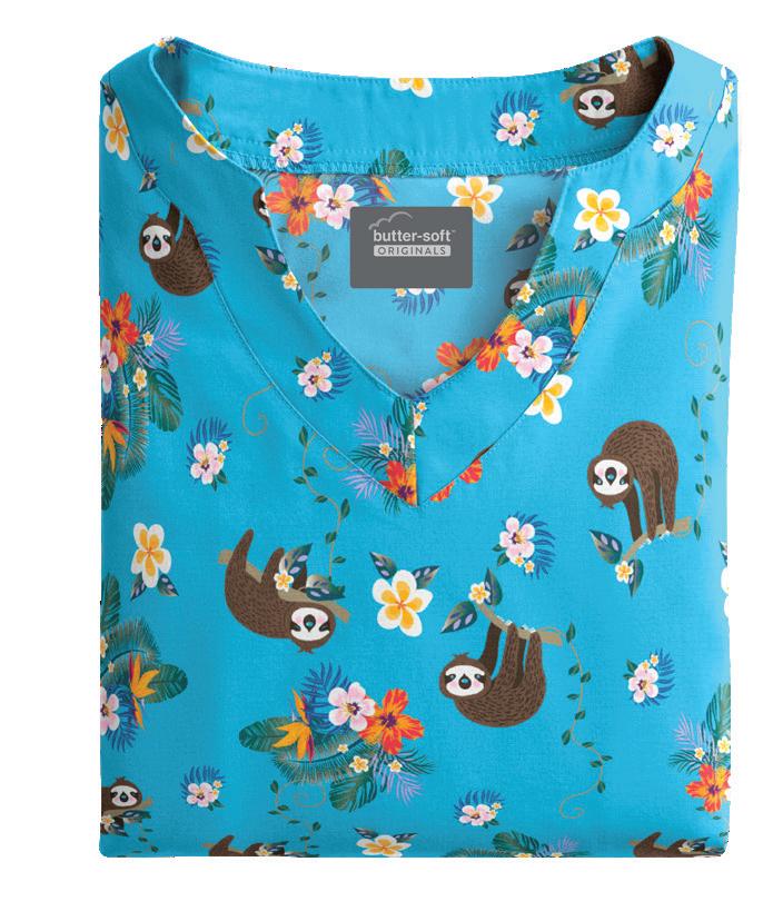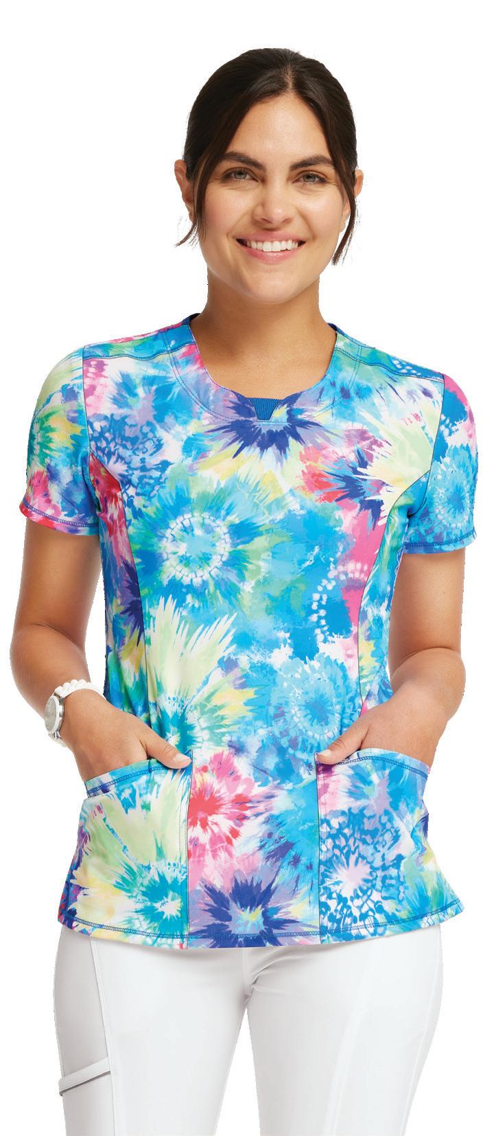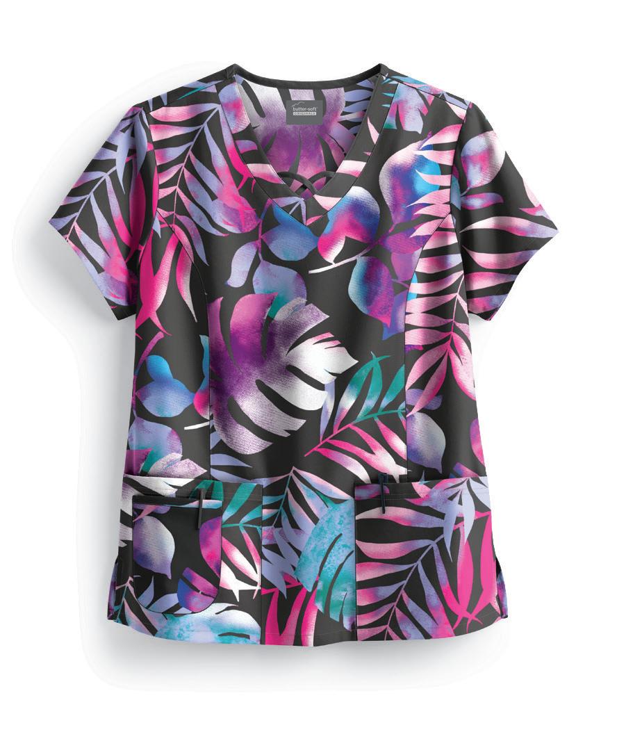 B. TROPICAL MIX WHITE TOP SALE Modern fit, 1 pocket, V-neck, tuck-in, back darts, bust darts, ID loop. Coordinates with Guava Fizz, Apricot Sunset, Orchid, Eucalyptus Leaf, Water Mint, Teal, and White. TS452 TMWT X XS-5X $22.99-$27.99 XXS-XL $18.39 , 2X-3X $20.79, 4X-5X $22.39