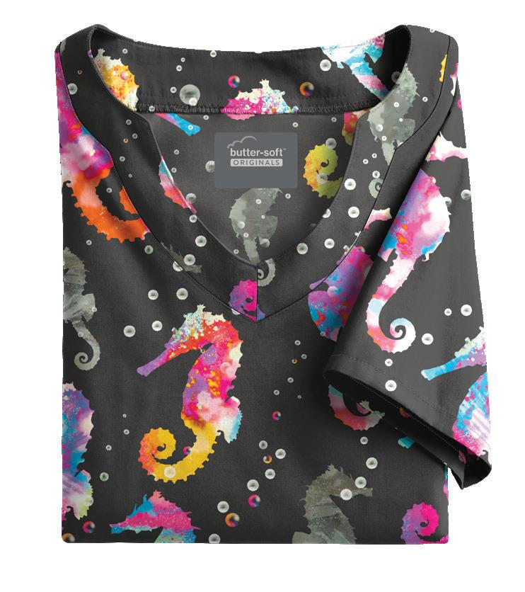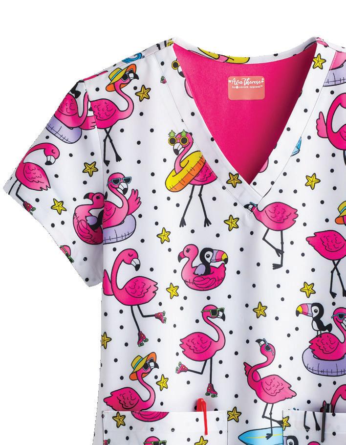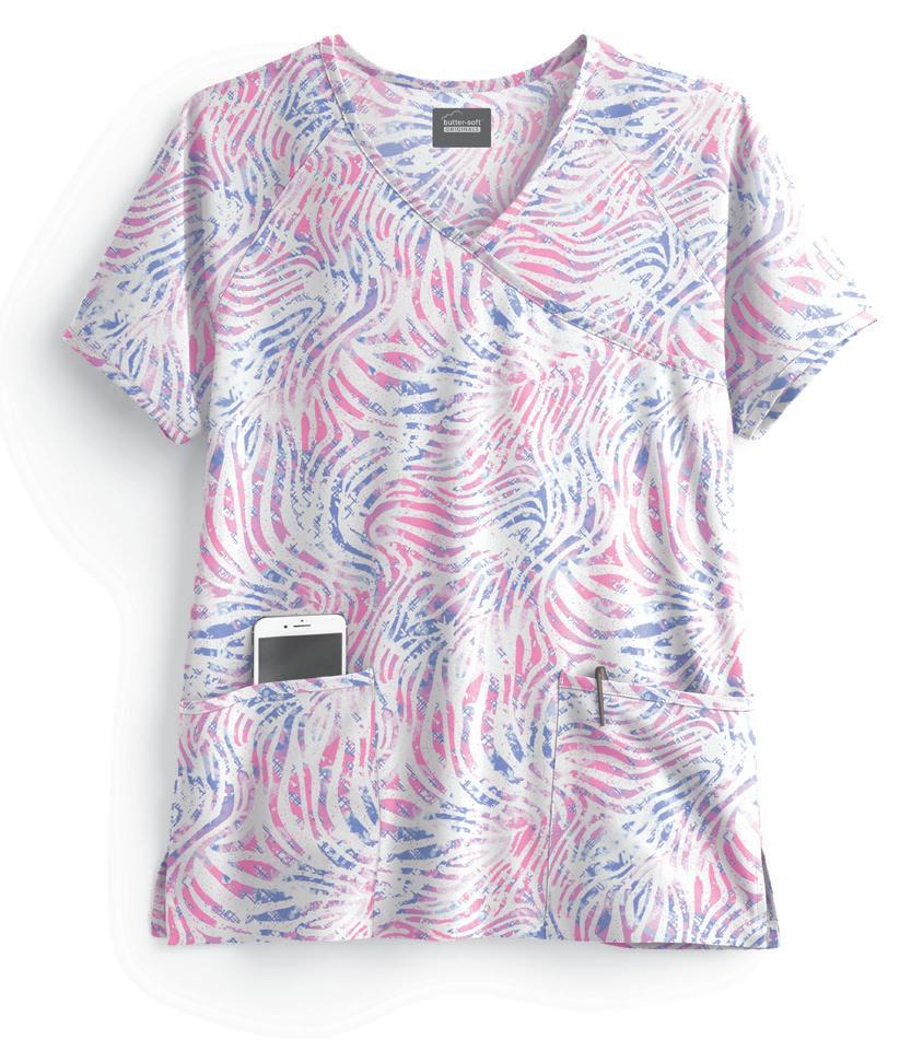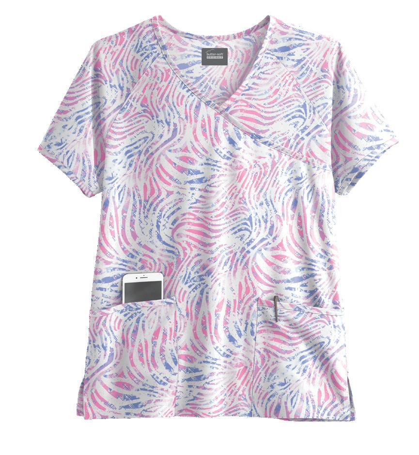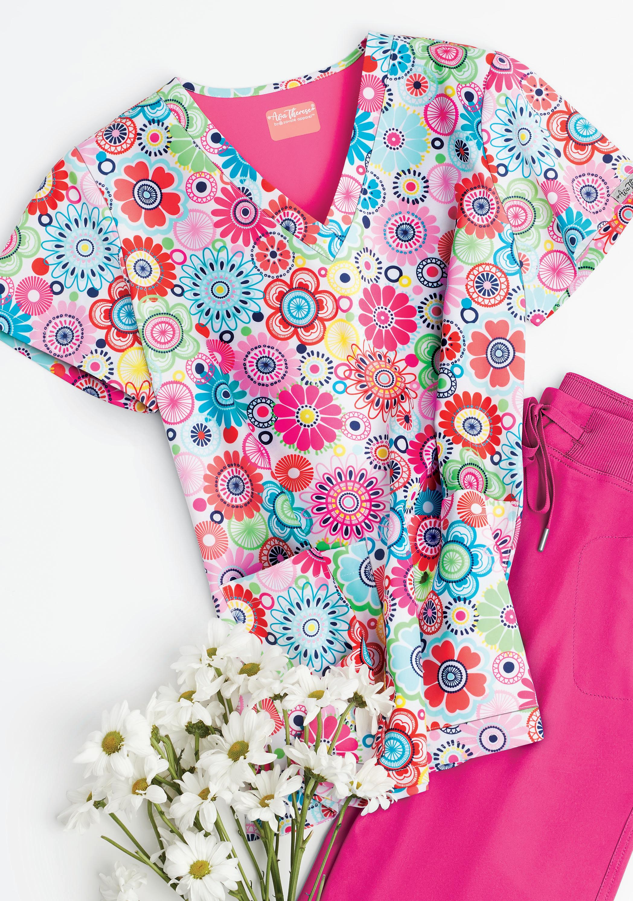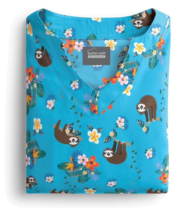 B. TROPICAL MIX WHITE TOP SALE Modern fit, 1 pocket, V-neck, tuck-in, back darts, bust darts, ID loop. Coordinates with Guava Fizz, Apricot Sunset, Orchid, Eucalyptus Leaf, Water Mint, Teal, and White. TS452 TMWT X XS-5X $22.99-$27.99 XXS-XL $18.39 , 2X-3X $20.79, 4X-5X $22.39
