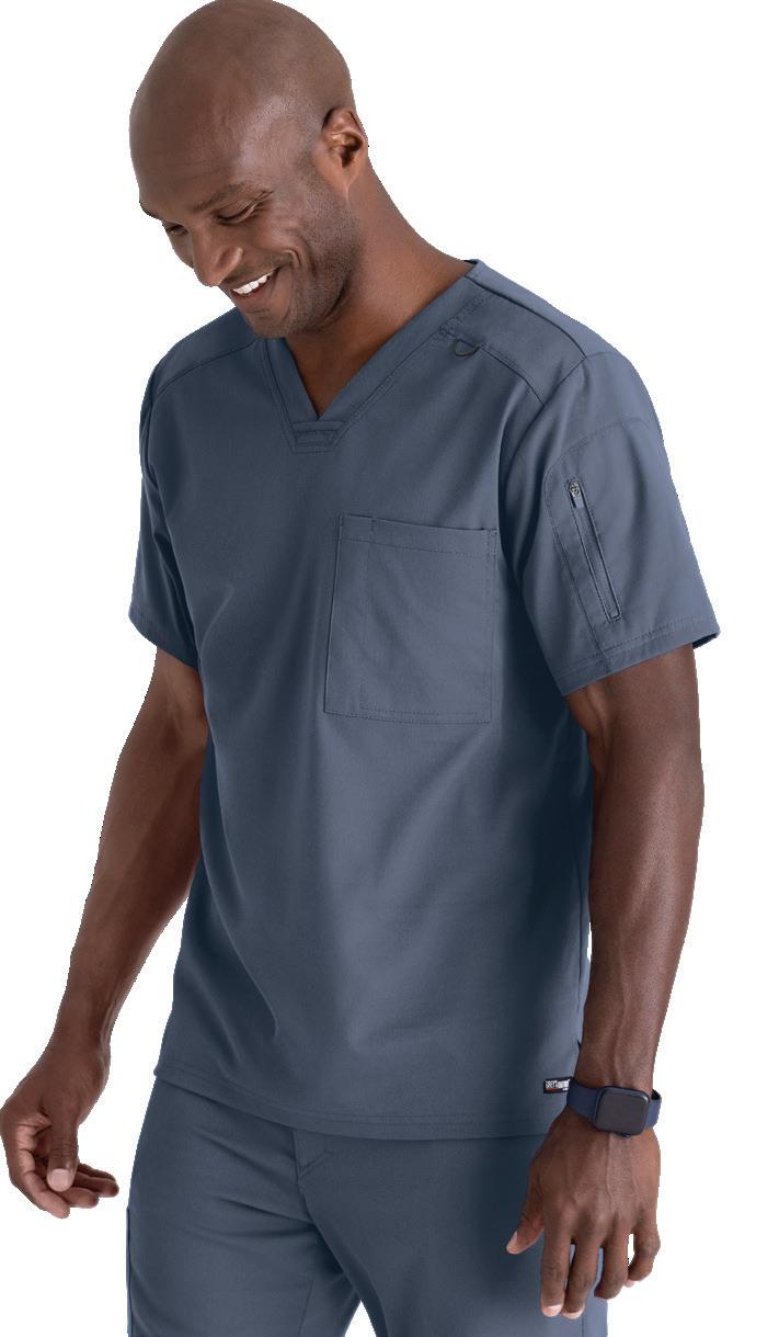 D. MARS 2-POCKET V-NECK TOP SALE Modern fit, side vents. Shown in Graphite Heather. MBS 375