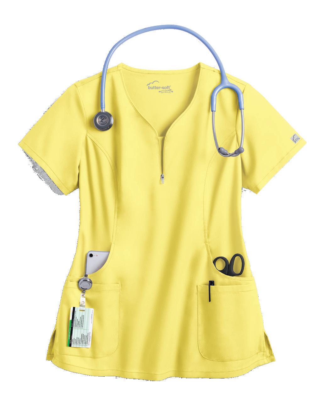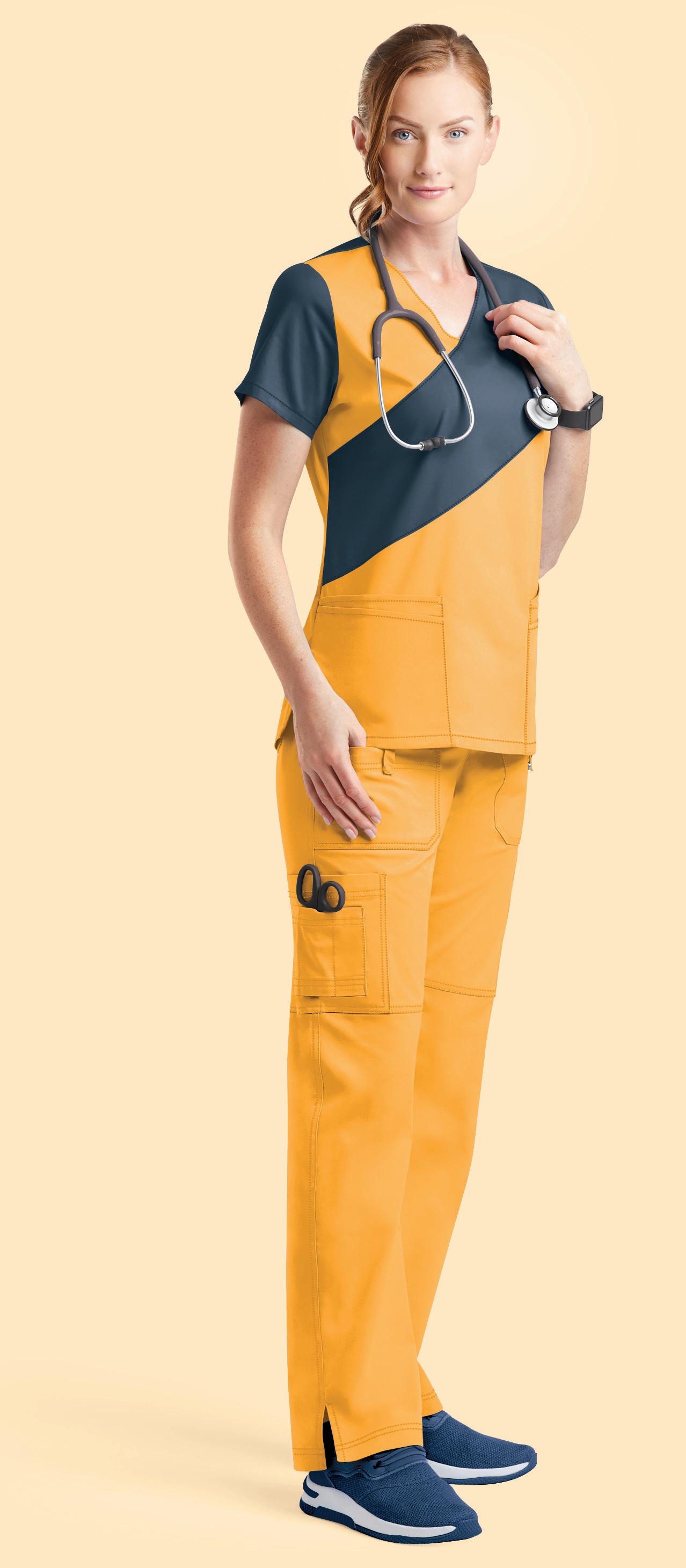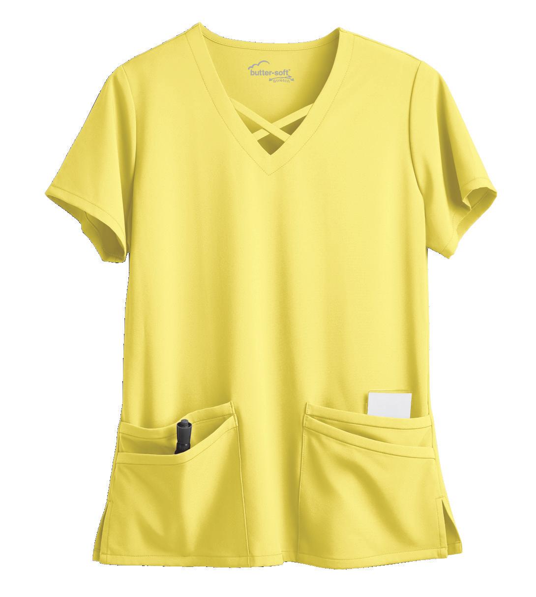 C. 1-POCKET V-NECK TUCK-IN TOP SALE Modern fit, back darts, bust darts, ID loop. Shown in Lemon Sherbet. BSS 452 X XS-5X $21.99-$26.99 XXS-XL $18.69 , 2X-3X $21.24, 4X-5X $22.94