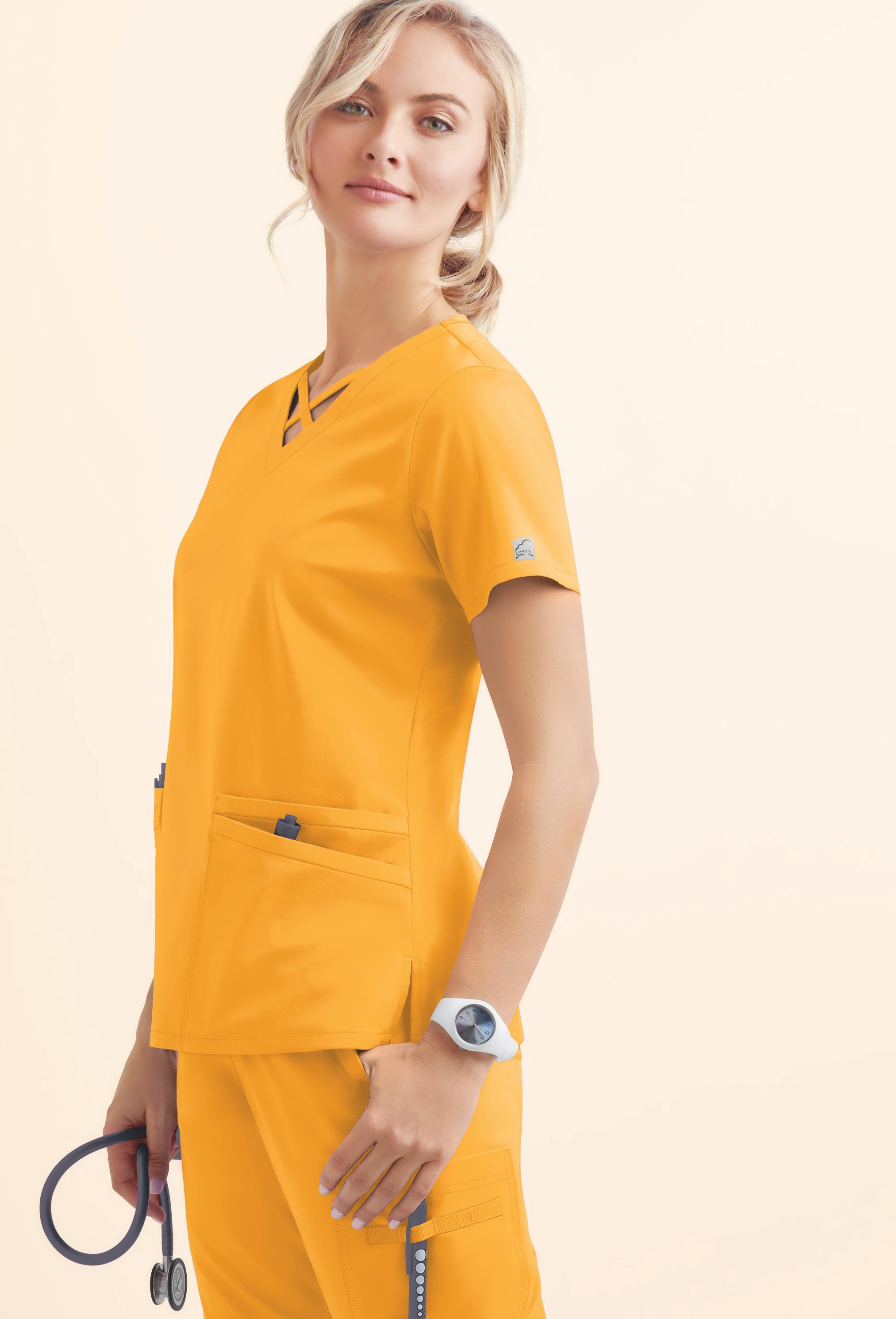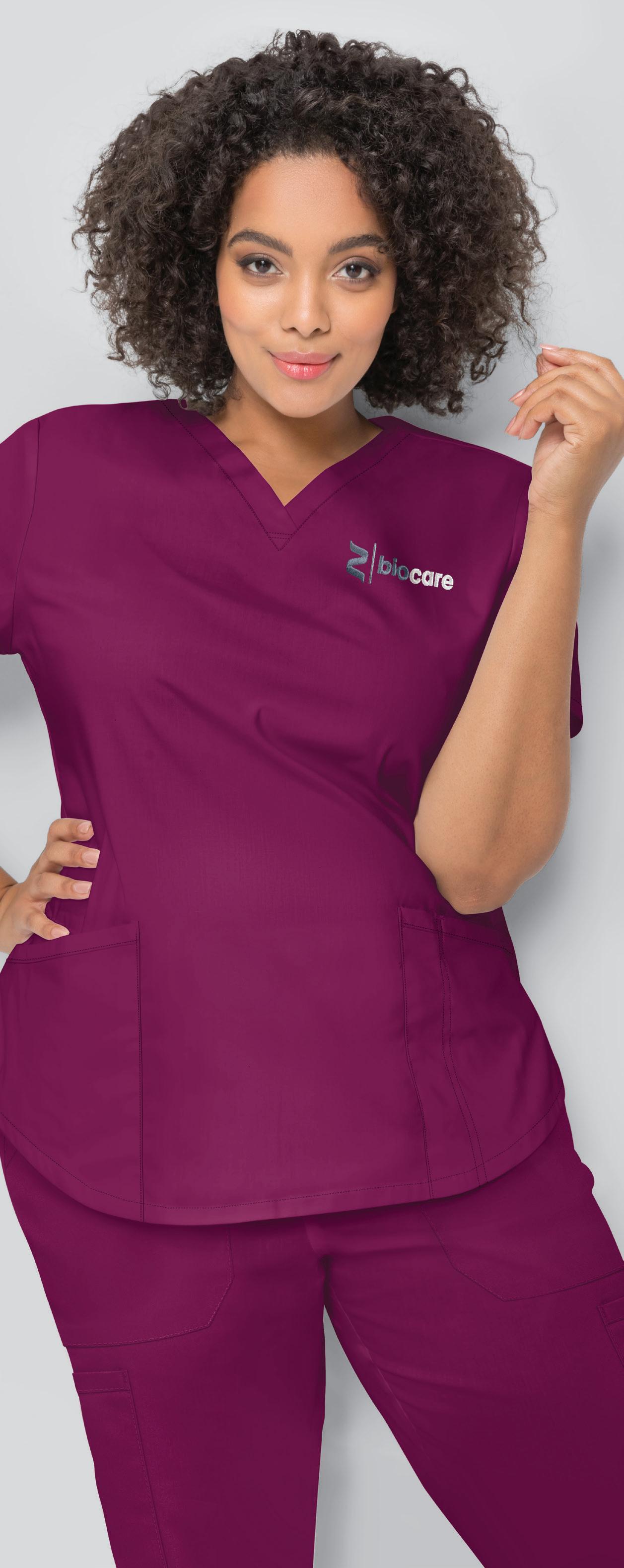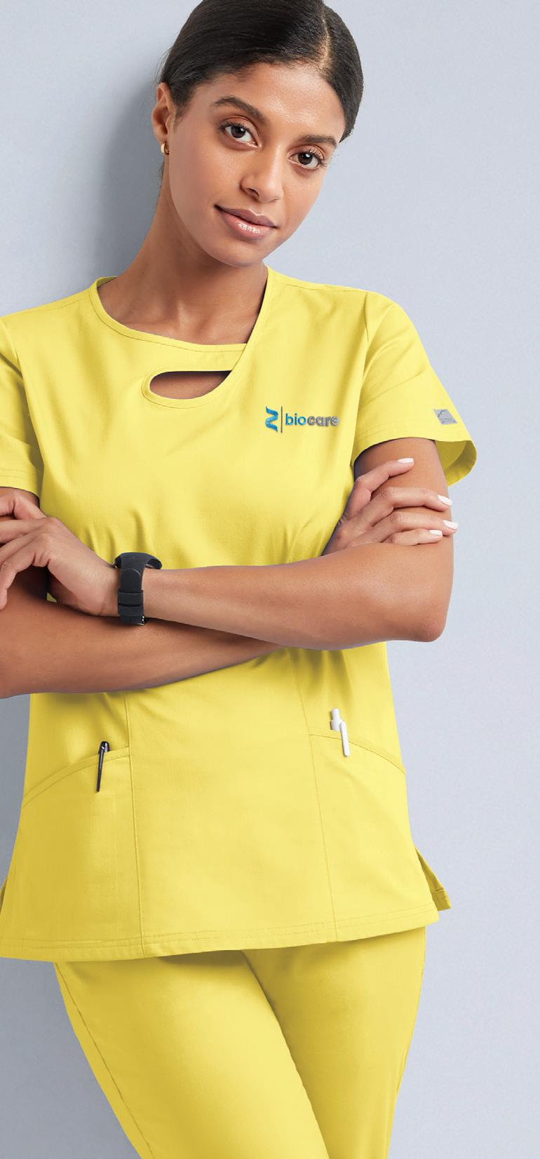 C. 1-POCKET V-NECK TUCK-IN TOP SALE Modern fit, back darts, bust darts, ID loop. Shown in Lemon Sherbet. BSS 452 X XS-5X $21.99-$26.99 XXS-XL $18.69 , 2X-3X $21.24, 4X-5X $22.94