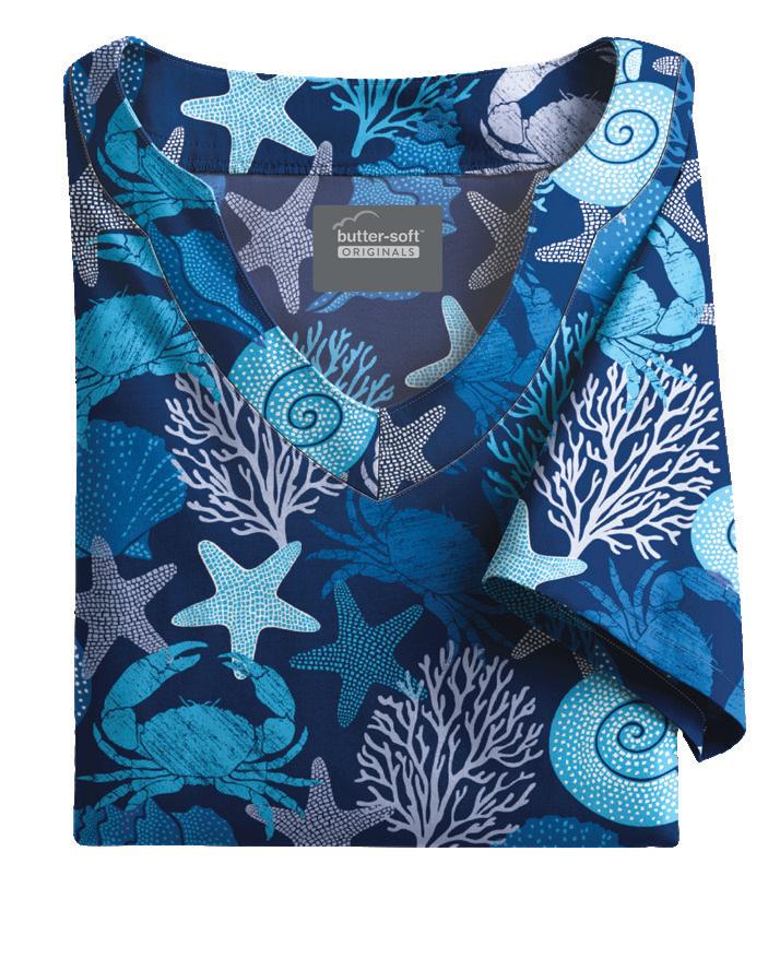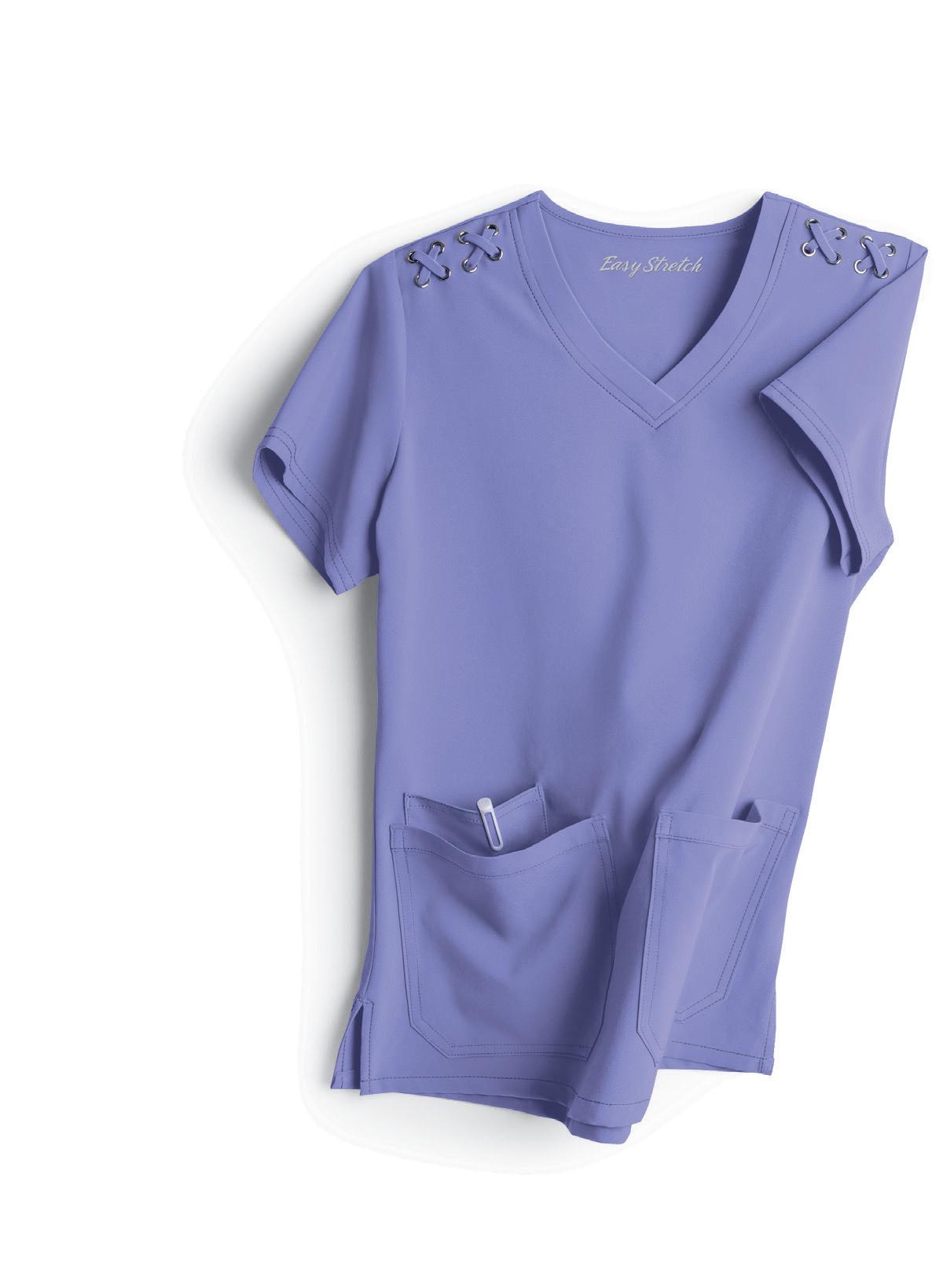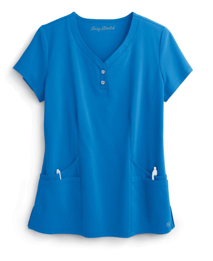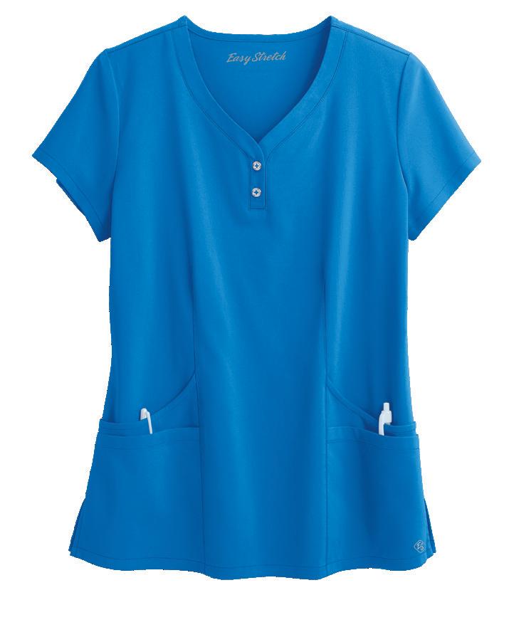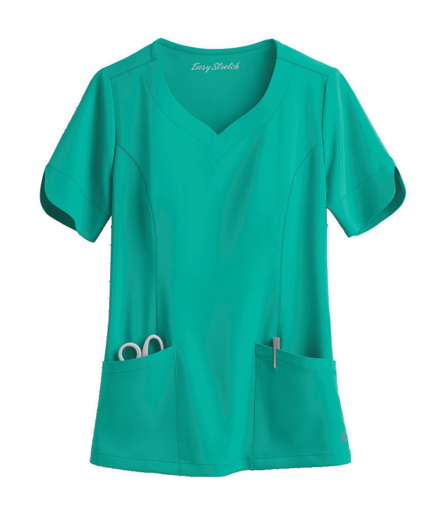 V-neck, 2 angled welt pockets, side vents, back darts Coordinates with Poolside View, Fuchsia and Sweet Rose. TS 631EOPV XS-3X $22.99-$25.99 XS-XL $18.39 , 2X-3X $20.79
