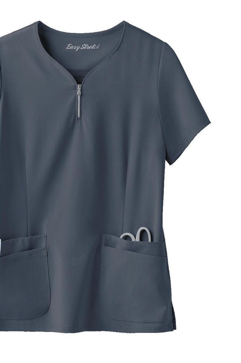 E. ZIPPERED CURVED NECKLINE TOP SALE Princess seams, back darts, 4 pockets, side vents. Shown in Lemon Sherbet. BSS 9 7 9 XXS-5X $26.99$31.99 XXS-XL $22.94 , 2X-3X $25.49,