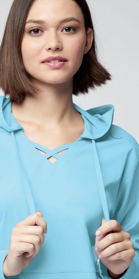 F. KNIT PANEL TOP SALE Knit front yokes and back side panels, deep kangaroo pockets. Shown in Eucalyptus Leaf See colors below. BSS 4246 XS-3X $29.99-$32.99 XS-XL $23.99 , 2X-3X $26.39