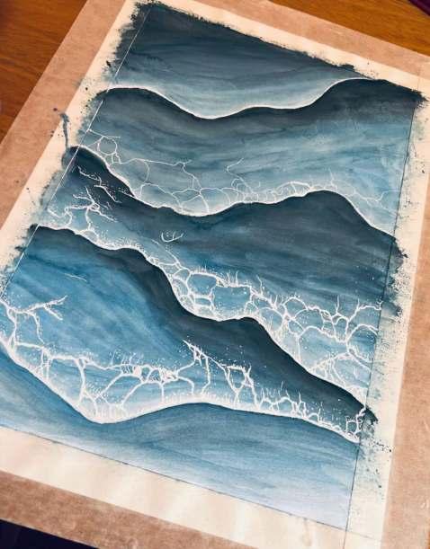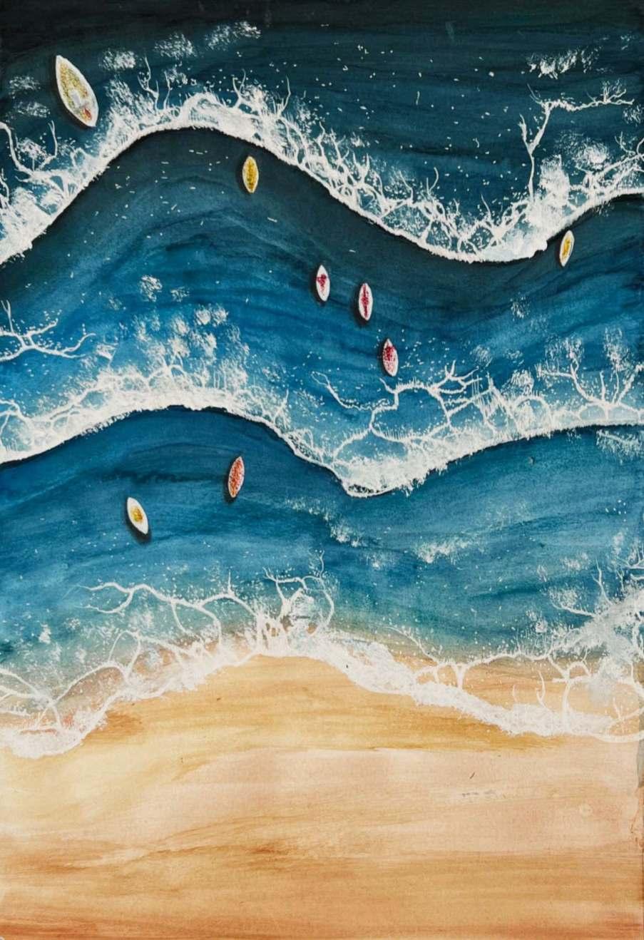 Feeling inside the waves. Acuarela con Acrilico. 65 cm x 40 cm. Noviembre, 2022.