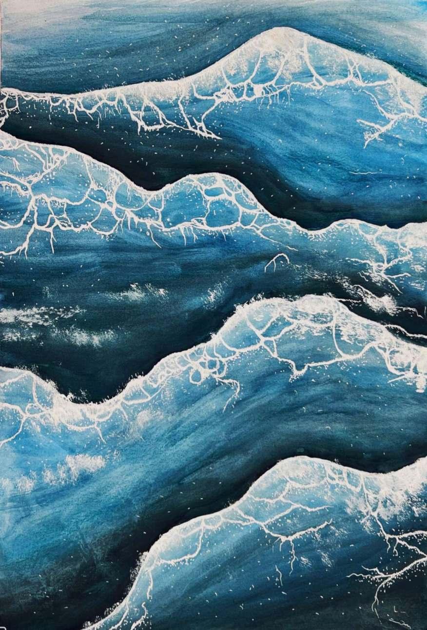 Esta obra transmite una idea muy importante: La fuerza de lo natural, y es que el océano puede representar muchísimas cosas y, una de ellas, es la naturaleza en su faceta más fuerte y salvaje. El mar puede llegar a derrotar enormes embarcaciones y a hacernos sentir pequeños e insignificantes. Por eso, traté de acentuar las olas en mis trabajos de acuarela, relacionándolo directamente con esa fuerza y valentía que desprende el mar. Conceptualizando, las olas se forman cuando en el océano el viento sopla en determinada dirección por un período alto de tiempo, las olas son la representación del océano. En este sentido, mi obra se divide en 3 piezas, y cada cuadro representa esa energía interior, de tener una gran personalidad y una gran fuerza espiritual.