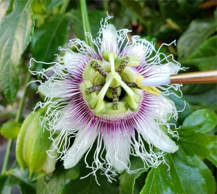 Figura 1. Polinización manual de Passiflora Fuente: Homesteadandchill (2019)