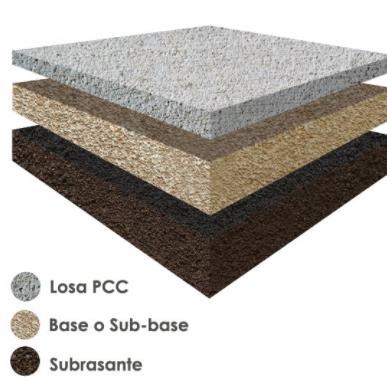 La figura 2 presenta las capas principales de las que se componen los pavimentos rígidos, que como se puede apreciar son tres.