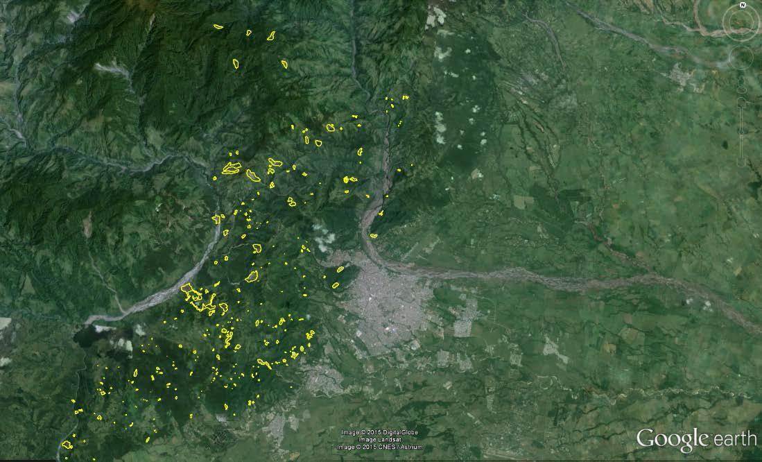 La identificación de las zonas de amenaza por deslizamientos es de vital importancia para la toma de decisión de las instituciones públicas porque de ellos dependen los permisos de parcelación, la construcción de vías, la ubicación de áreas de cesión, la localización de los terrenos destinados a vivienda de interés social (VIS) y la delimitación de las zonas de protección, como lo muestra la figura anterior son muchos los deslizamientos en esta zona geográfica.