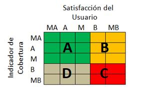 espacialmente con valores bajos y muy bajos del indicador de satisfacción del usuario, darán