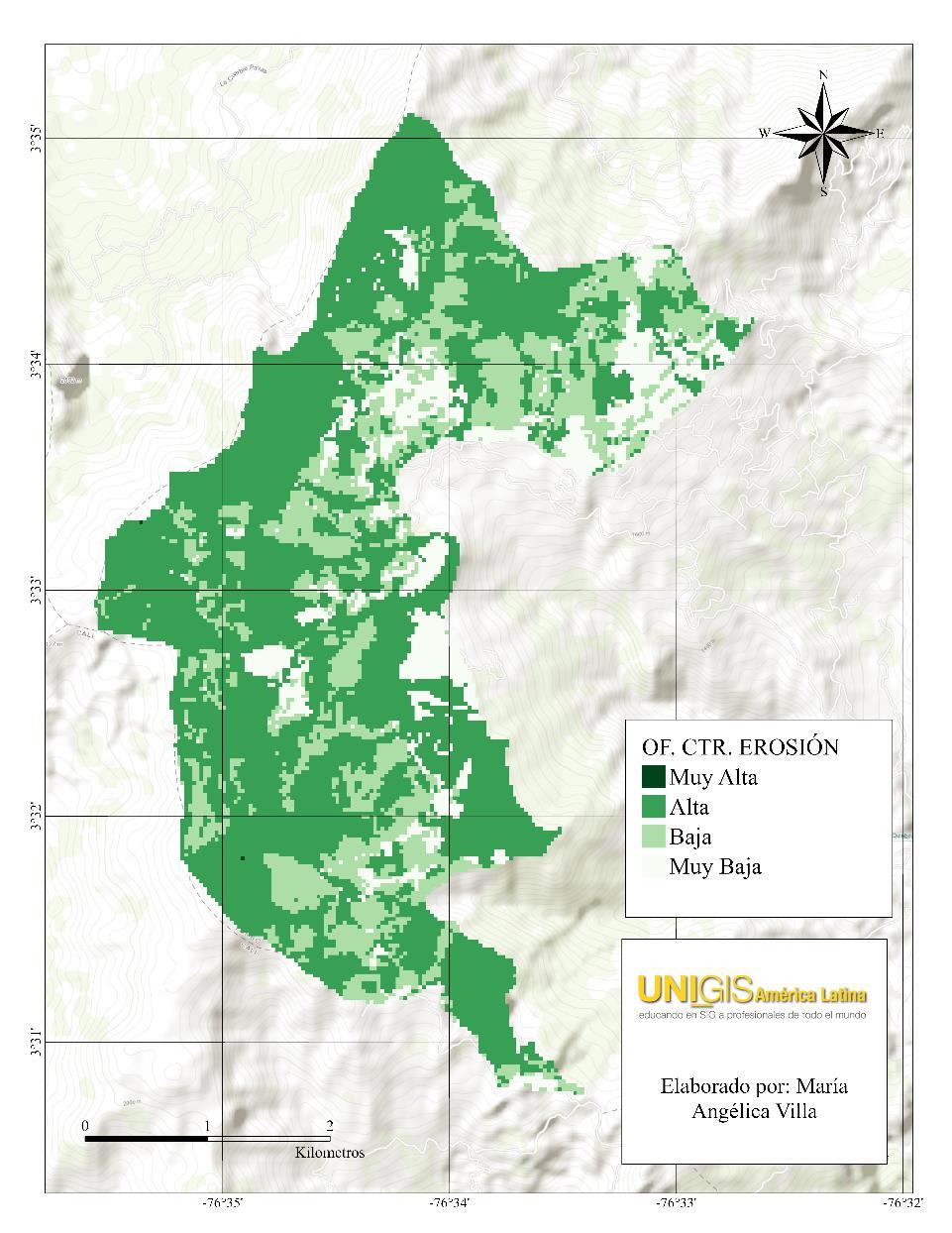 categorías de oferta “muy alta” y “muy baja”; dado que, para estas categorías, los porcentajes de control de erosión son bastante bajos.