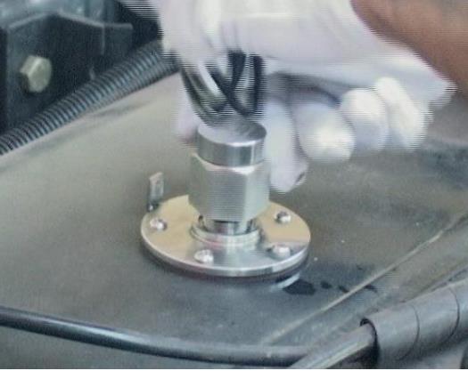 Mount the flange and tighten with 5 screws. Seal the joint between the flange and the inside of the fuel tank with automotive sealant