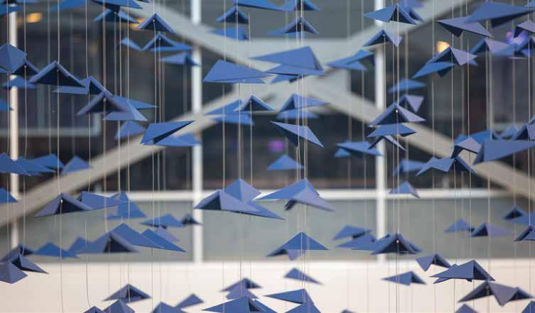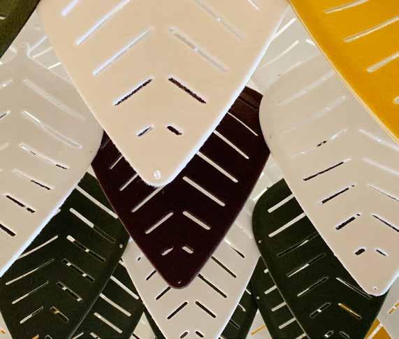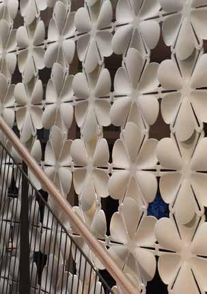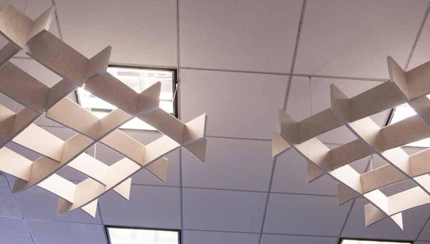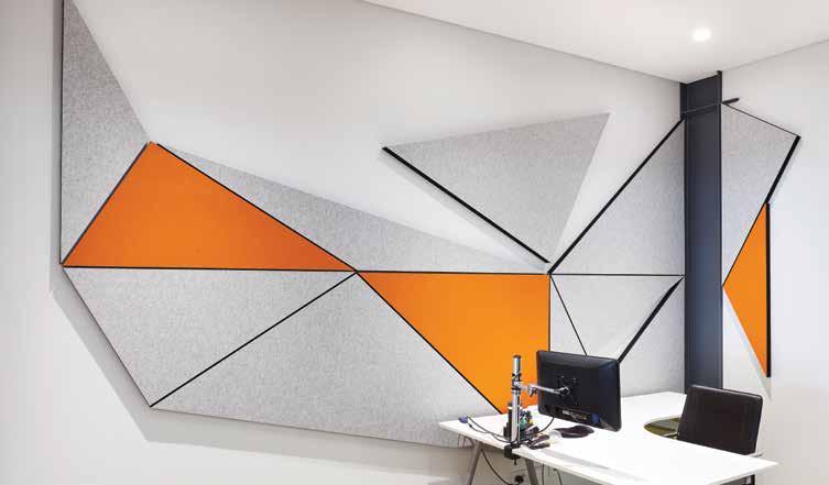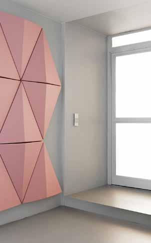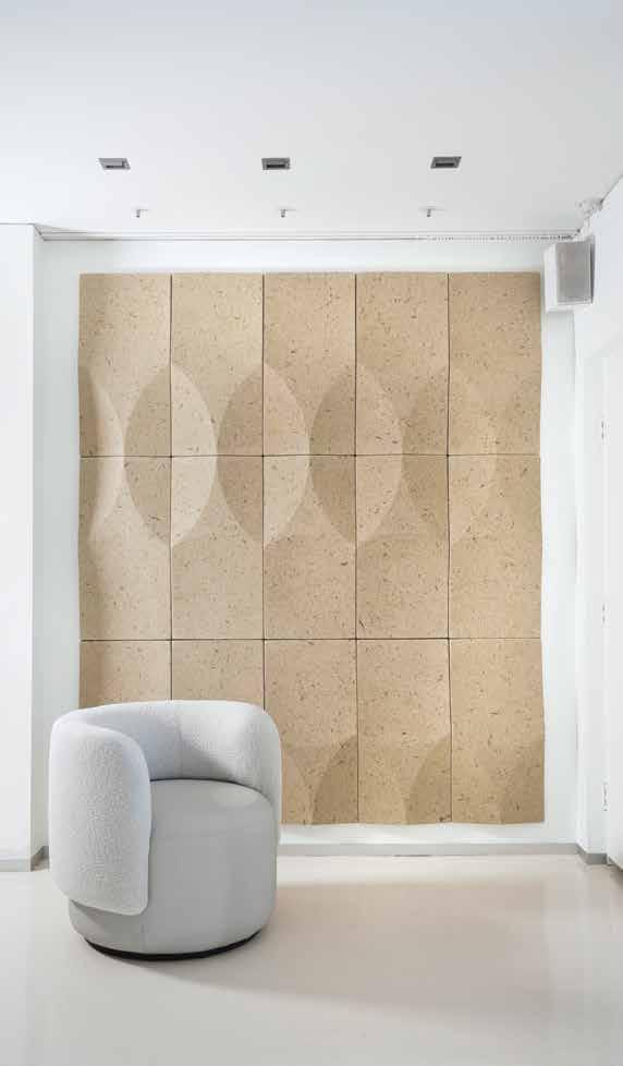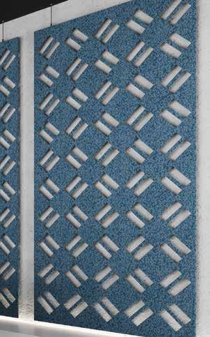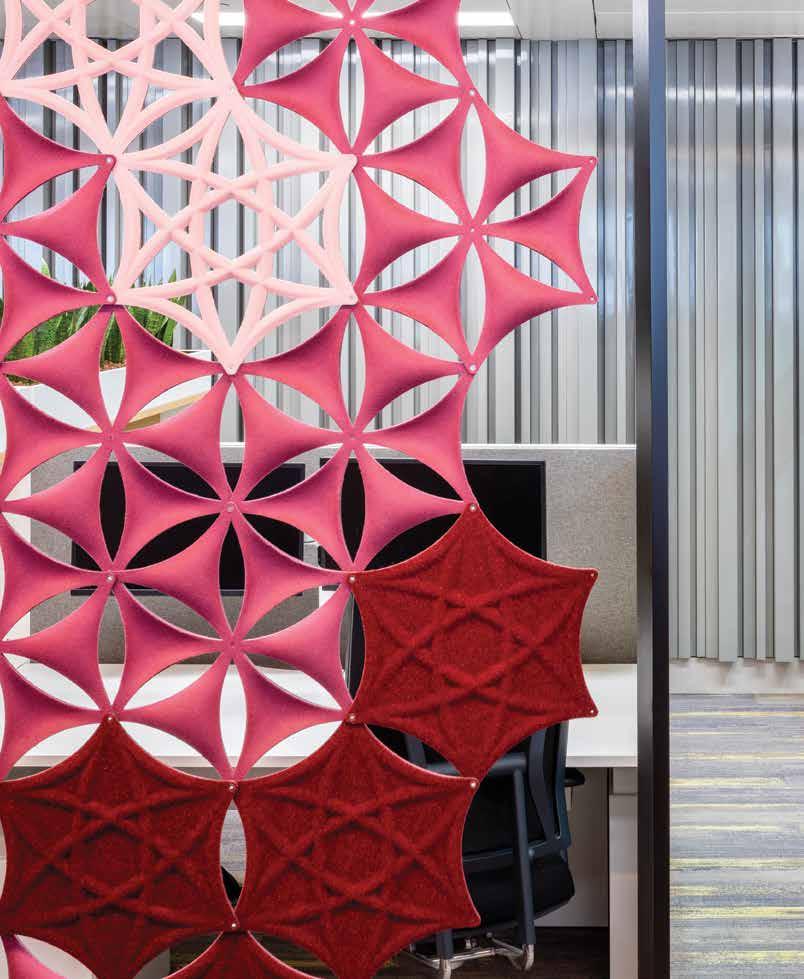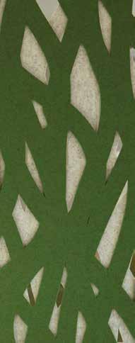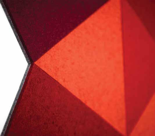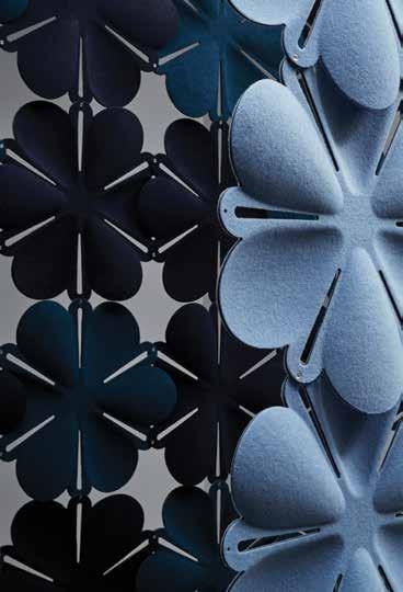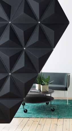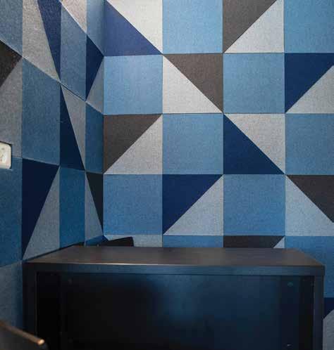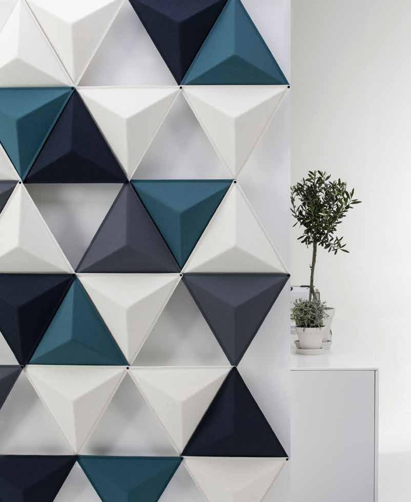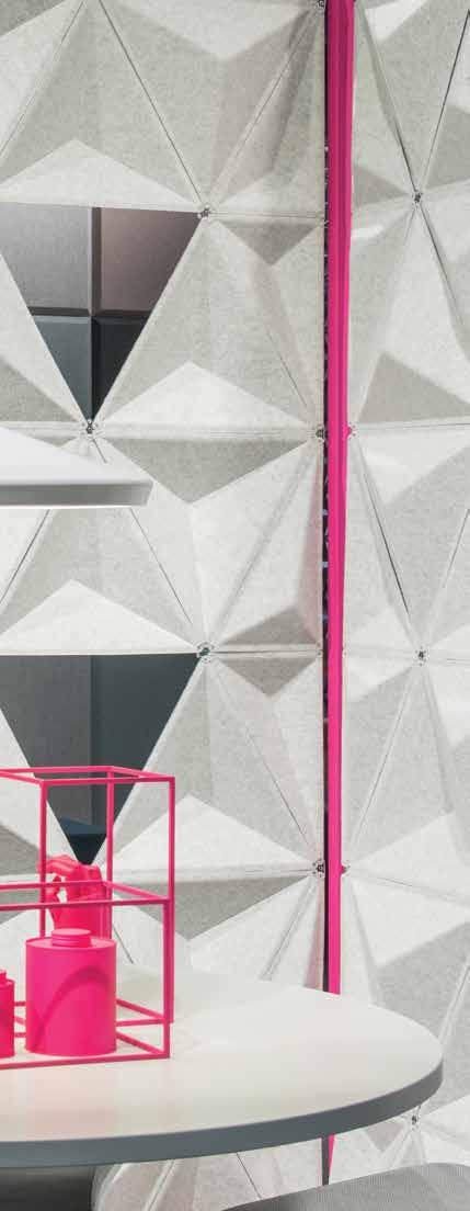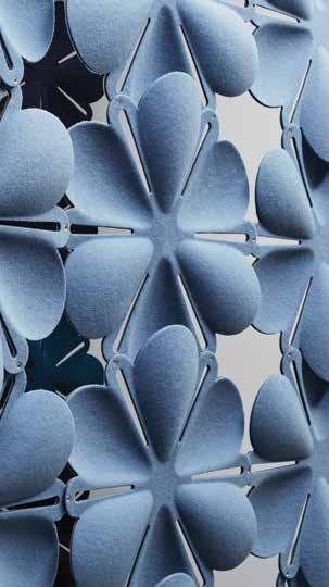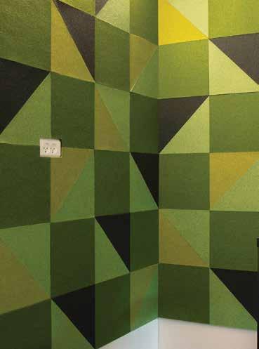 The Folded Poetry Collection by Eliza Redmann is a multi-dimensional expression of her journey recovering from traumatic brain injury. Drawing inspiration from her altered perception of reality, the collection’s Diad, Triad, and Hexad designs feature directionally scattered surfaces that not only disperse and absorb sound but also visually evoke the sensation of disorientation. Available in an array of Ecoustic® Solid Color Core ore colorways and a vast selection of Wilsonart® printed patterns, these designs can be used individually or combined to produce limitless customizable patterns, adapting to various spatial applications. Crafted from PET, Folded Poetry seamlessly merges art and functionality, addressing aesthetic and acoustic challenges while offering a profound reflection of resilience and recovery.
