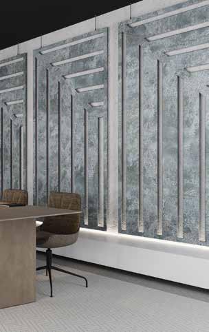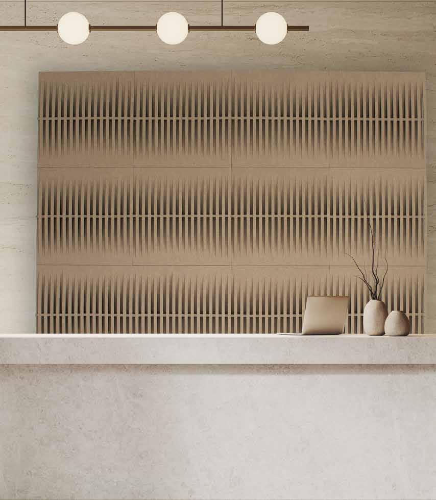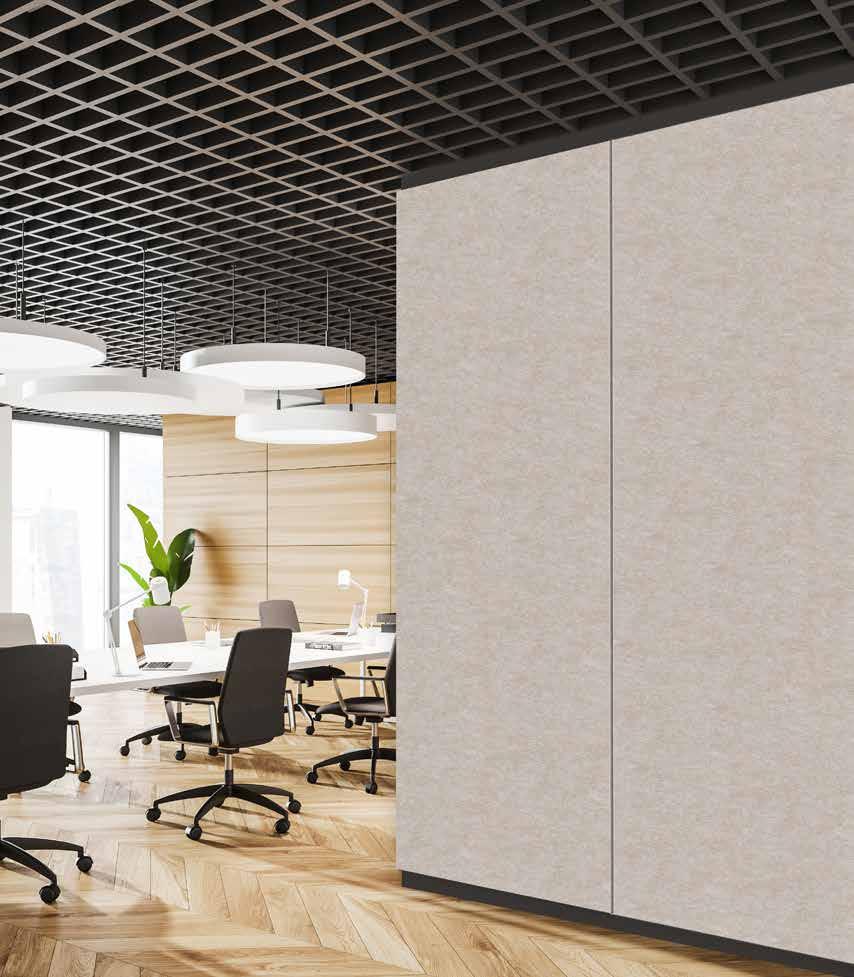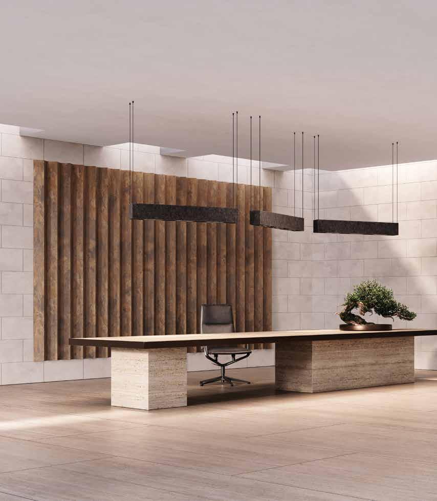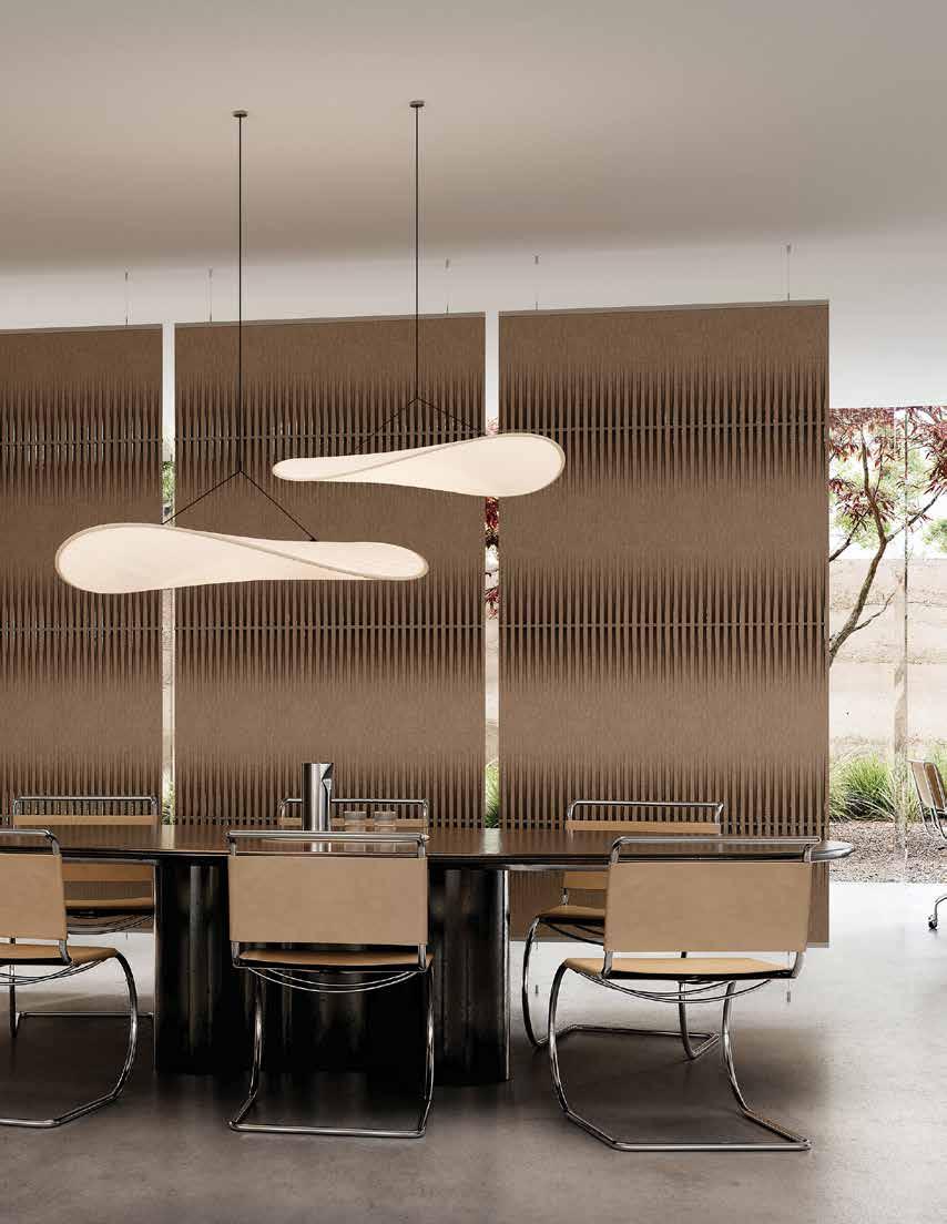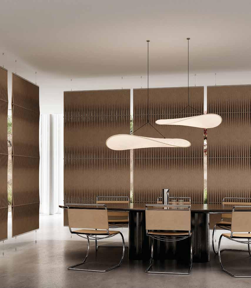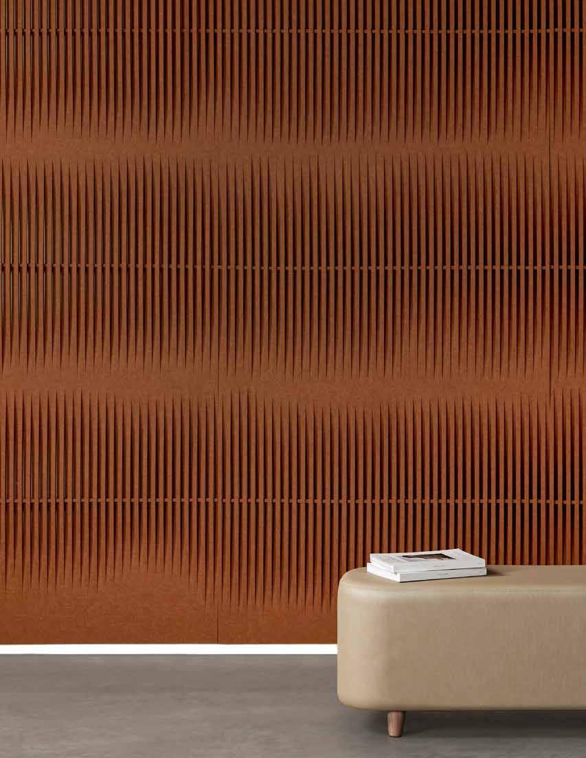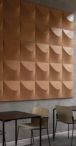 The leather surface enriches the visual and sensory qualities of a space while supporting effective sound absorption, creating interiors that are as refined in atmosphere as they are in function. Available in several designs the Pelle Collection features a diverse range of surfaces and colors and can be used individually or combined to achieve distinctive compositions.