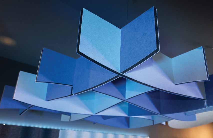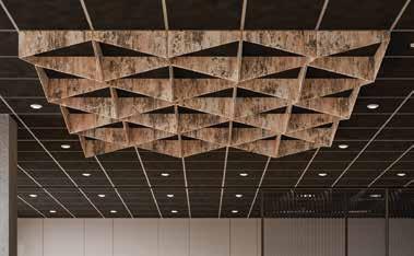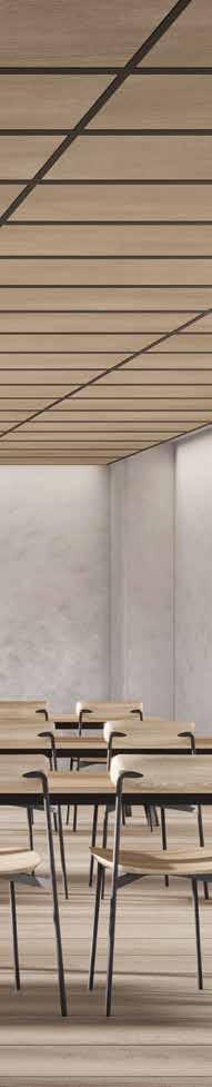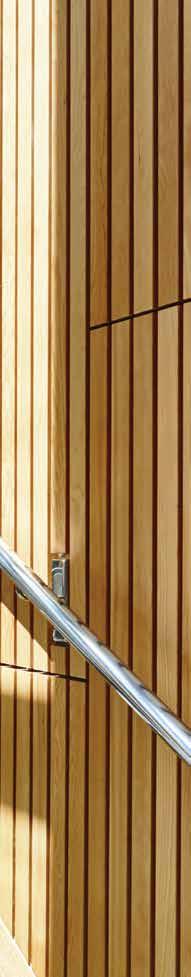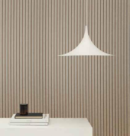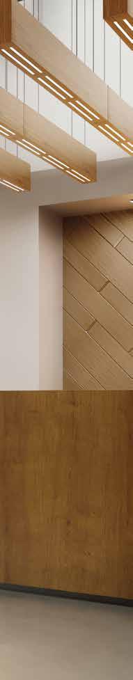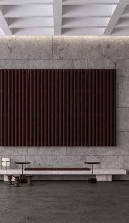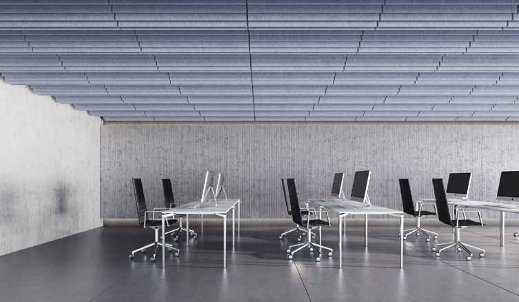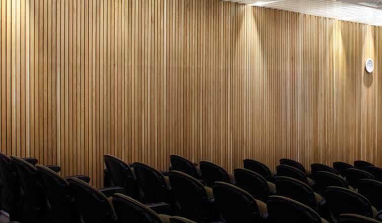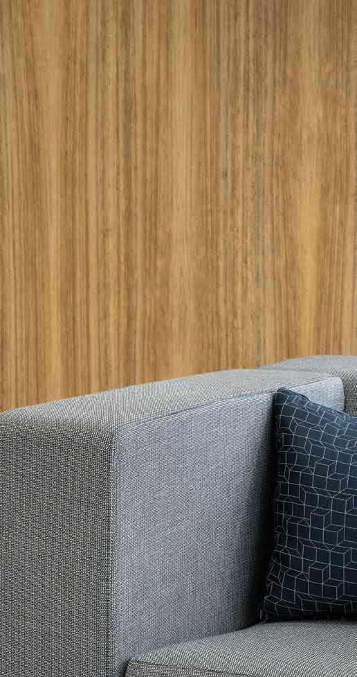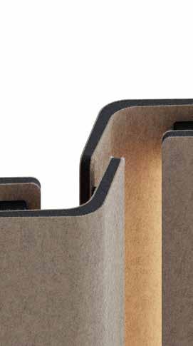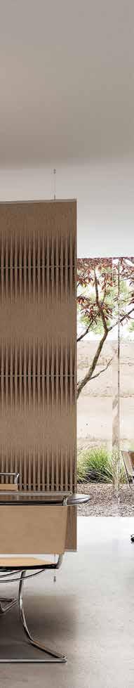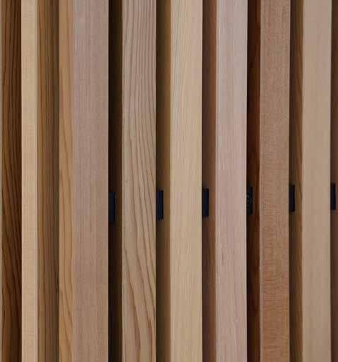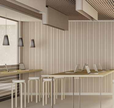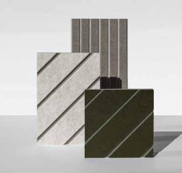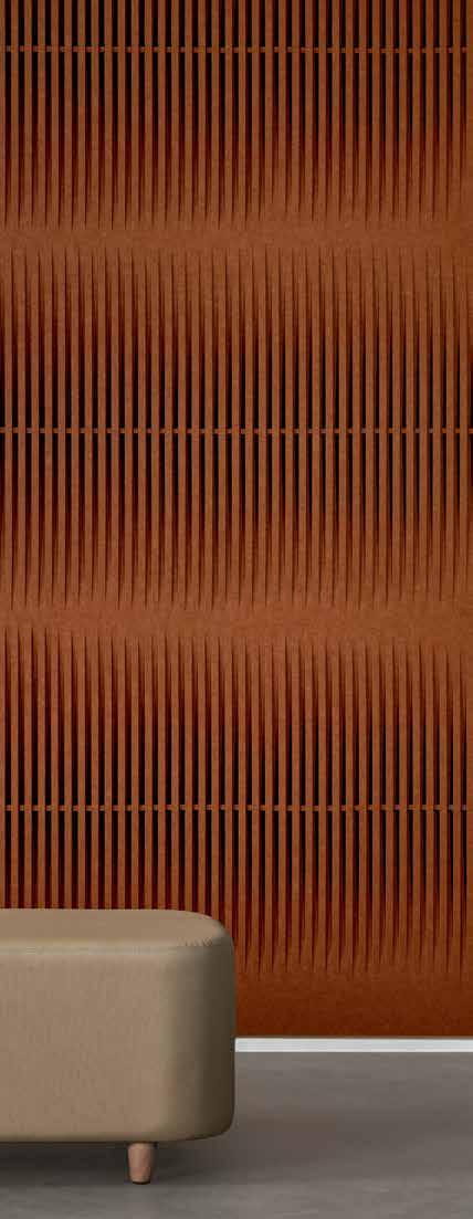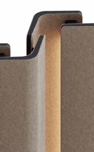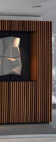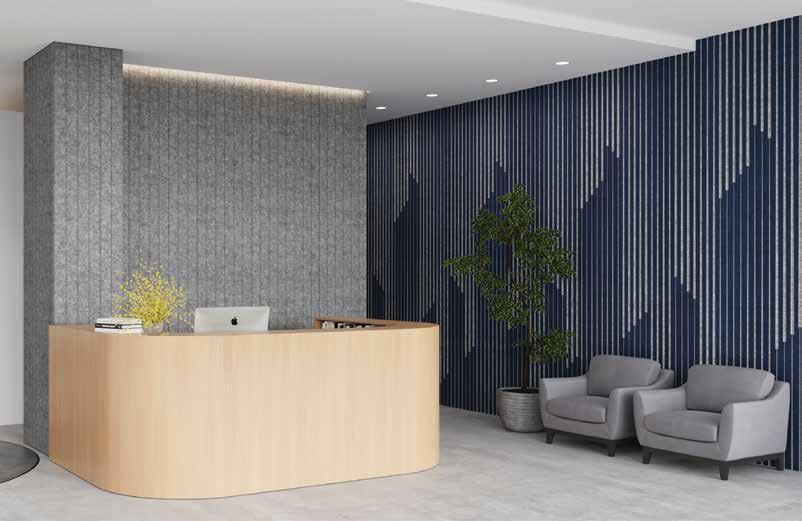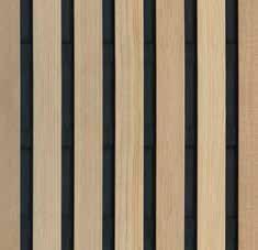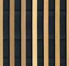 The Ecoustic® Timber Blade Panel is produced using PEFC-certified solid wood sourced from sustainably managed forests. Available in an assortment of blade profiles, the panels can be installed in horizontal or vertical orientation on walls and ceilings. The system features a black acoustic scrim backing to enhance soundabsorption. Timber Blade Panels are designed for modularity and are pre-finished allowing for simple, efficient installation, and ease of ongoing maintenance. The design results in a linear wood finish with minimal on-site labor for installation. Additionally, when mounted with an air gap, or using Ecoustic® Panel sound-absorbing cores as a base, the panels become ideal for architectural installations where reverberation control is critical to the comfort and amenity of the room.