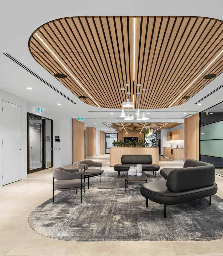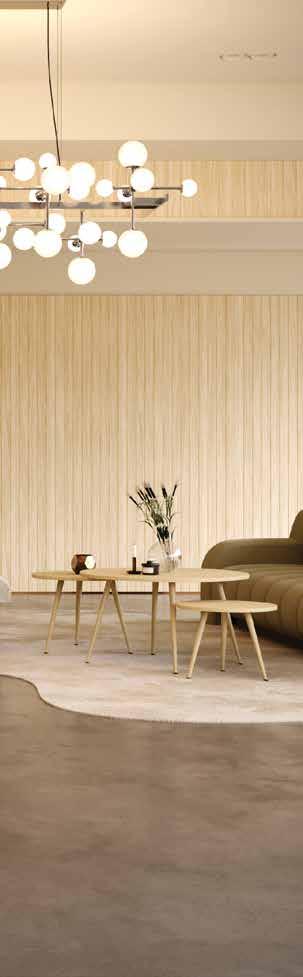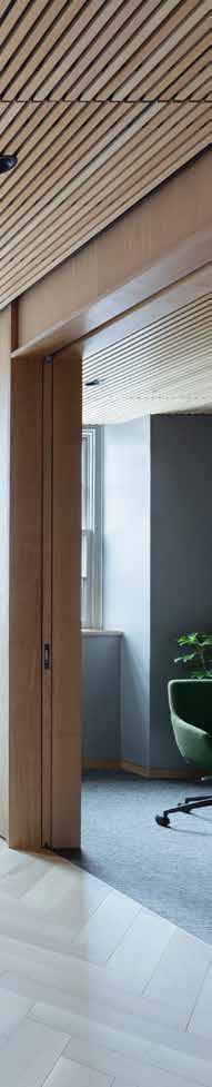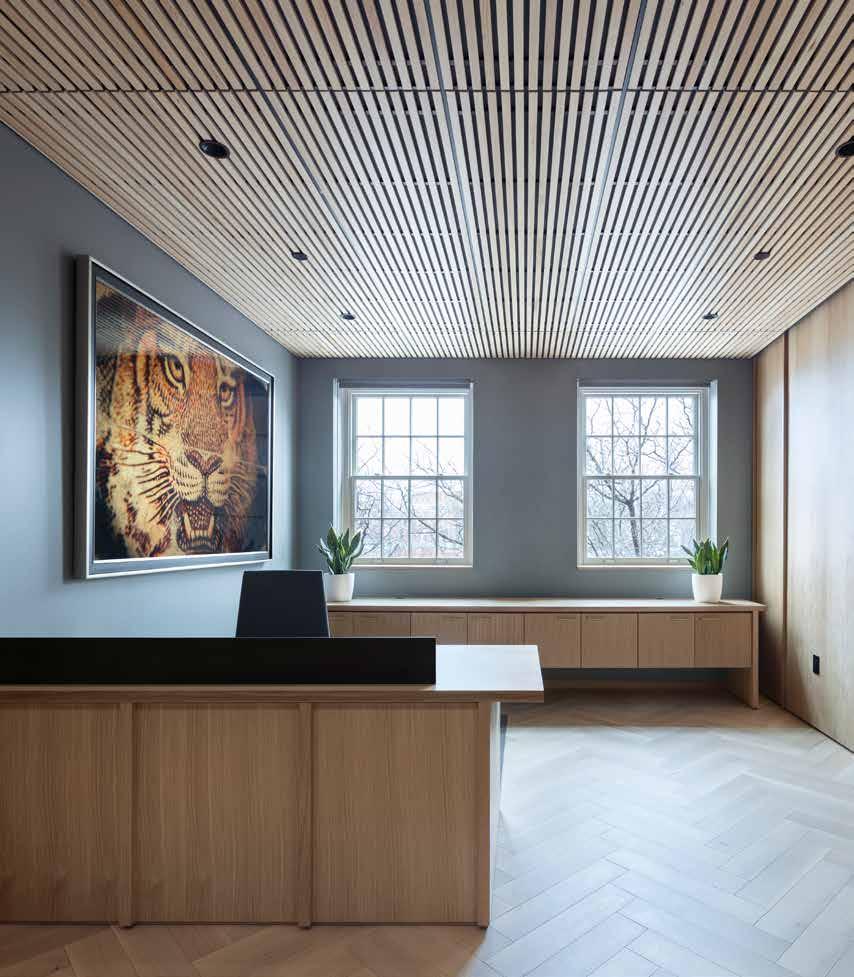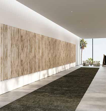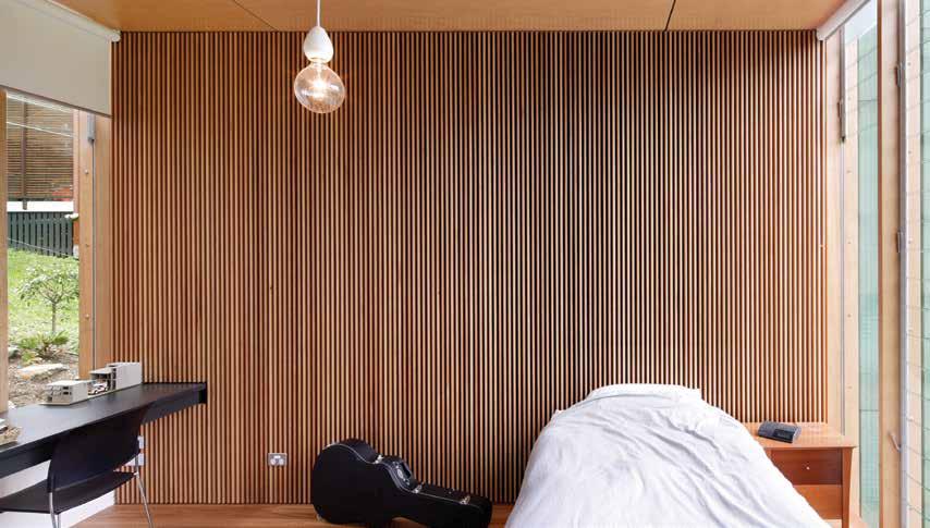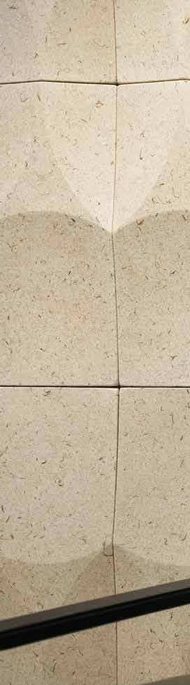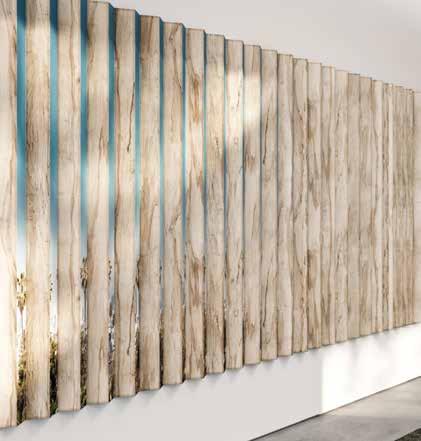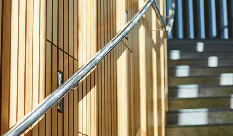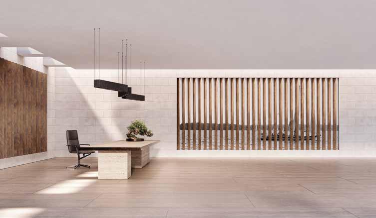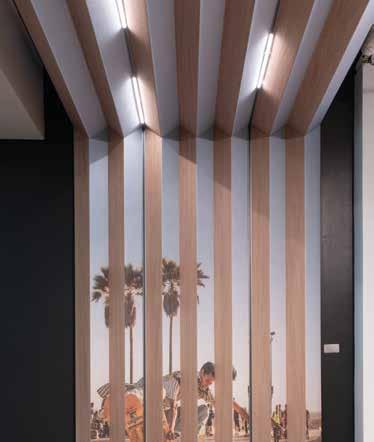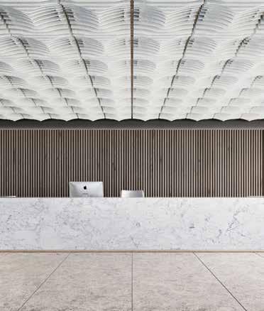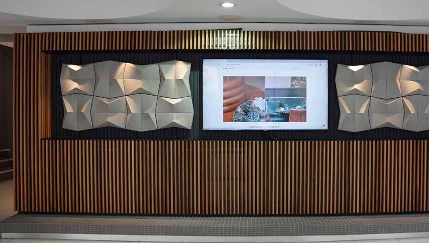 The Ecoustic® Timber Blade Panel is produced using PEFC-certified solid wood sourced from sustainably managed forests. Available in an assortment of blade profiles, the panels can be installed in horizontal or vertical orientation on walls and ceilings. The system features a black acoustic scrim backing to enhance soundabsorption. Timber Blade Panels are designed for modularity and are pre-finished allowing for simple, efficient installation, and ease of ongoing maintenance. The design results in a linear wood finish with minimal on-site labor for installation. Additionally, when mounted with an air gap, or using Ecoustic® Panel sound-absorbing cores as a base, the panels become ideal for architectural installations where reverberation control is critical to the comfort and amenity of the room.