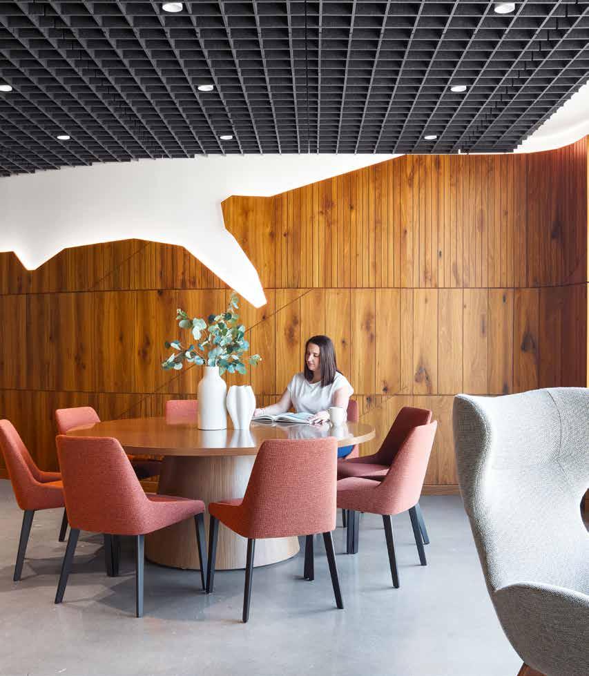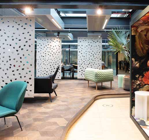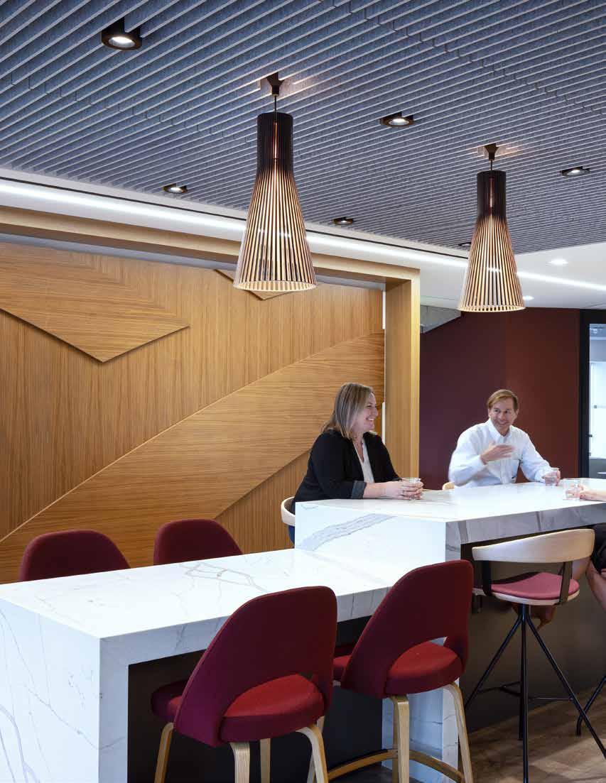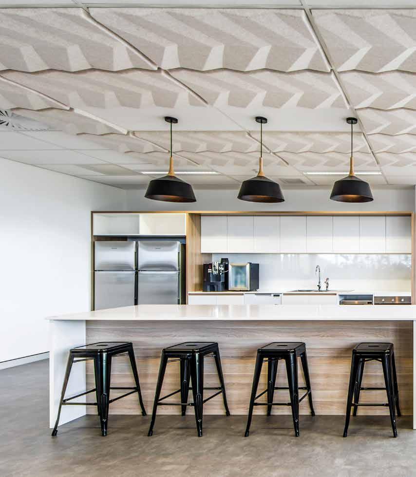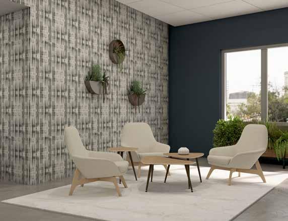 Artisan Acoustic Wallcovering utilizes Unika Vaev’s top performing sound absorbing Ecoustic® Panel multi-layered product, in a new and unique way, allowing clients to choose from a broad selection of patterns from the well-known Wilsonart® collection and the On Country collection designed by Amanda Hinkelmann. Clients may also provide their own image, branding, logos, or any color or pattern to achieve their design vision.