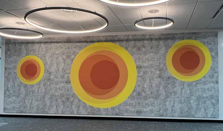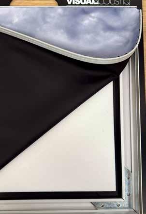VisualAcoustiq® provides a versatile canvas for designers to achieve dramatic visuals, impactful branding, or impressive graphics, while also providing significantly enhanced acoustic benefits for most any space. Each unit of VisualAcoustiq® is custom produced to your specifications and shipped in a prefabricated kit for ease of installation. The images can be changed as frequently as needed with minimal effort and cost as they simply clip on to a concealed frame. VisualAcoustiq® delivers large format, high-resolution, and durable imagery with significant acoustic properties, achieved with our 0.98″ Ecoustic® Panel beneath the 100% polyester printed canvas. VisualAcoustiq® can accommodate a maximum dimension of 10' x 75'.