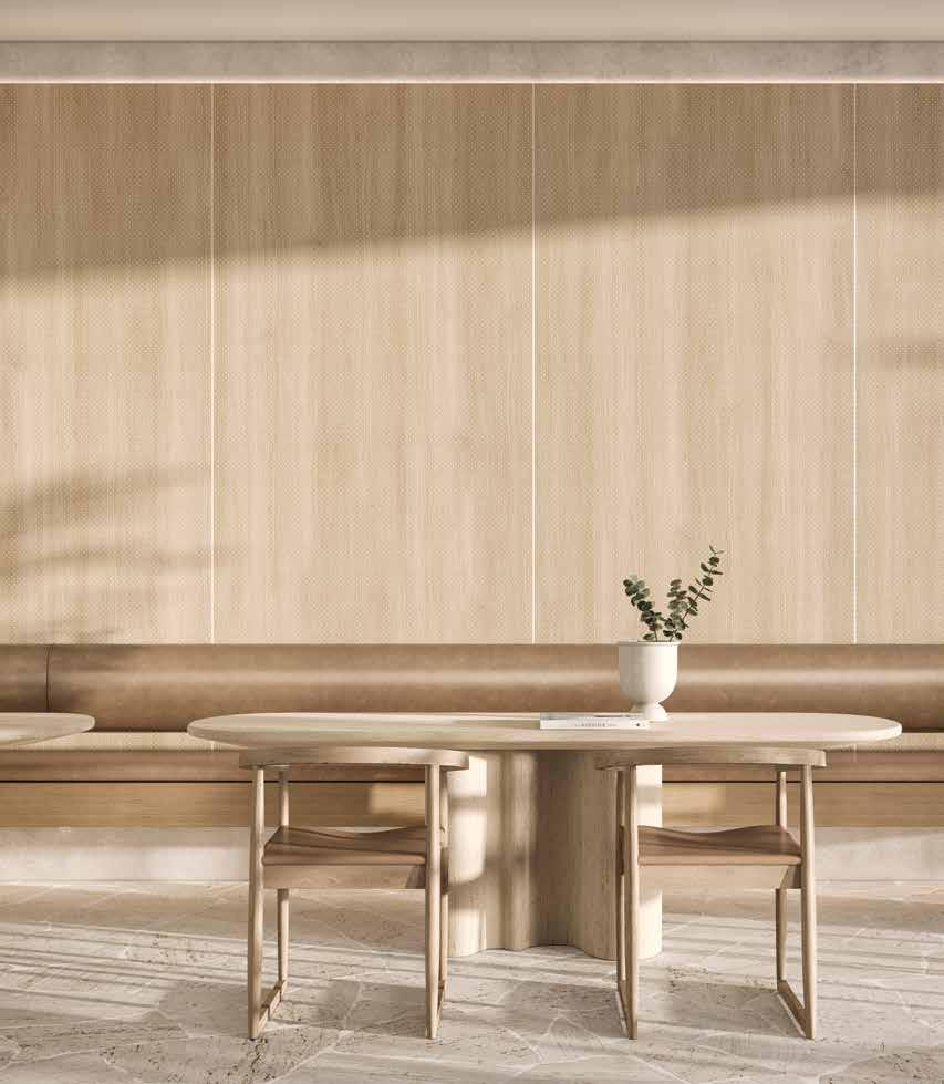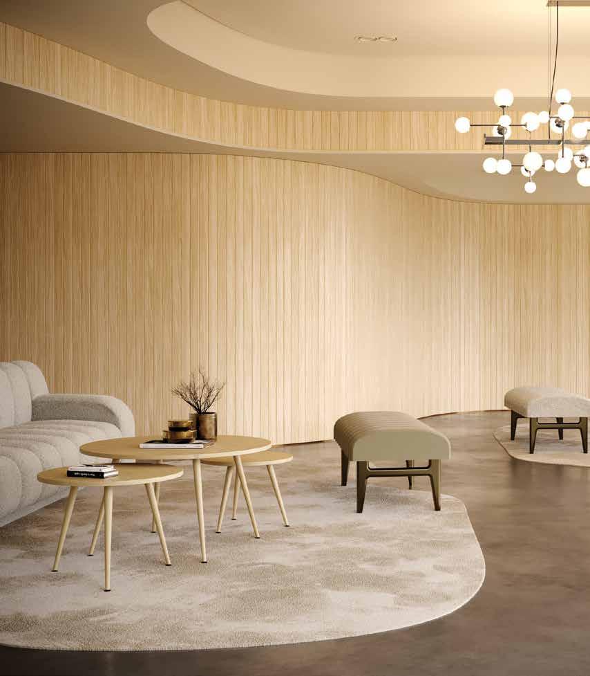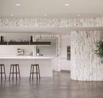 Radius Panel addresses the complex task of sound absorption on curved surfaces with finesse. This versatile panel includes meticulously cut linear grooves, ensuring effortless installation on curved surfaces. Radius Panel is offered in a diverse array of striking patterns from the Wilsonart® collection, spanning intricate woodgrains, captivating abstracts, and modern solid digital prints.