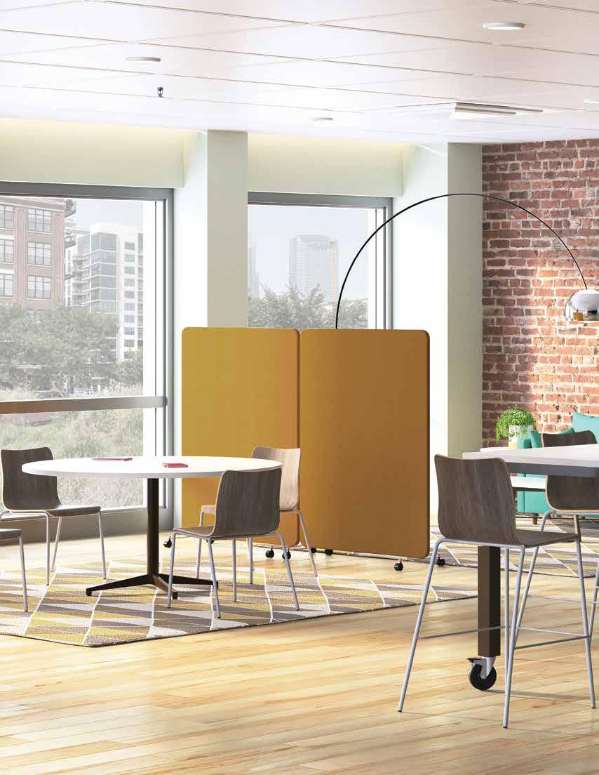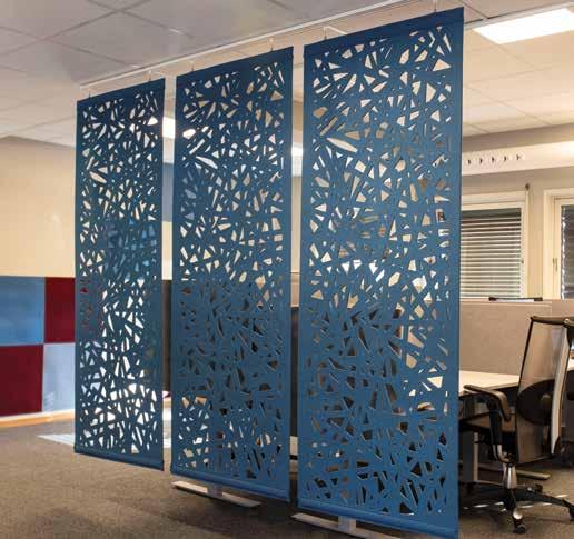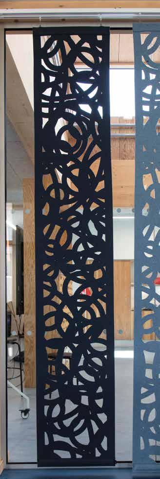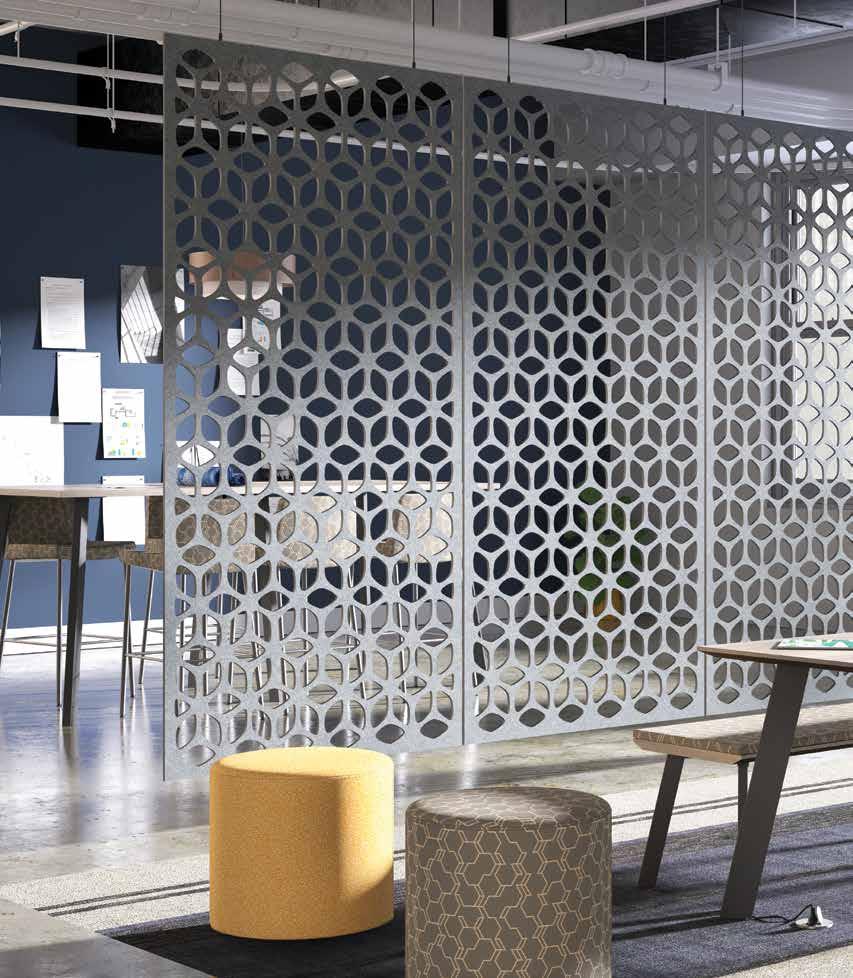 Part of the Ecoustic® Panel Collection, Ecoustic® Screen is designed to reduce and control reverberated noise in building interiors. The acoustic screen consists of polyester felt fabric adhered to both sides of a rigid, PET acoustic core. This collection is available in a variety of colorways. Ecoustic® Screen Panels can be cut to design baffles or clouds using standard cutting tools on site.