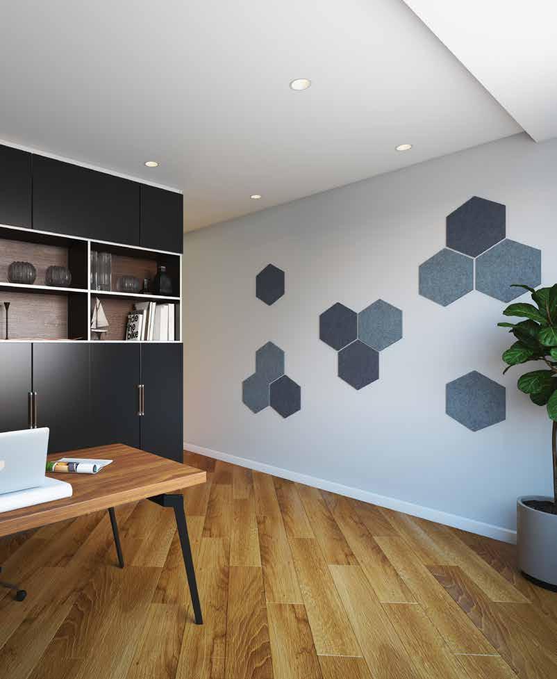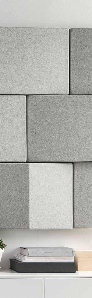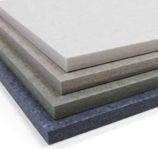 Our felt-faced Ecoustic® Panel Collection offers high-performance acoustic control with a refined, modern aesthetic. Available in a wide range of colorways, these versatile felt-faced panels reduce reverberation when applied to walls or ceilings and are ideal for any type of commercial or residential interior space. Each panel measures 47.6″ x 107″ and can be easily cut to suit custom shapes and sizes, supporting flexible design intent. Offered in four thicknesses, 0.31″, 0.53″, 0.98″, and 1.97″, the panels feature a thermally bonded felt face over a polyester core that is tackable, moisture resistant, and fire rated. Simple to install and sustainably made, Ecoustic® Panels are also compatible with aluminum trim edging kits tailored to each thickness.