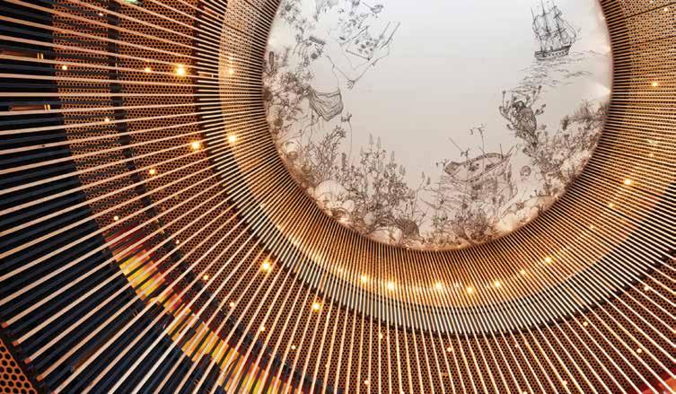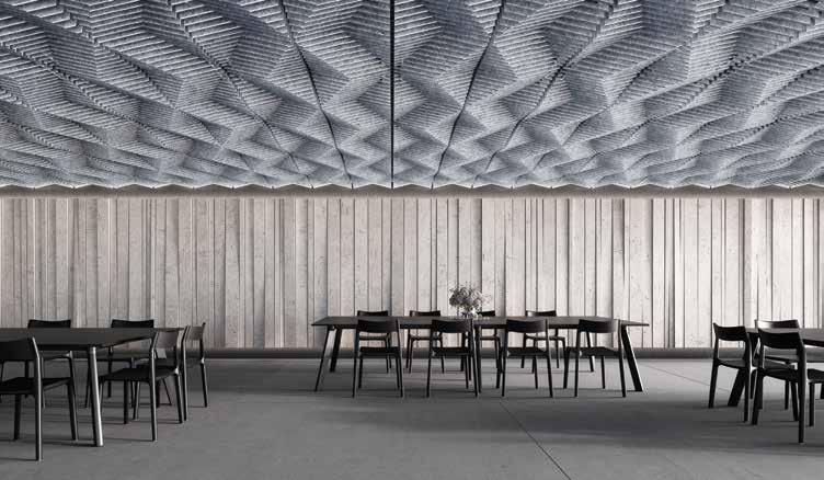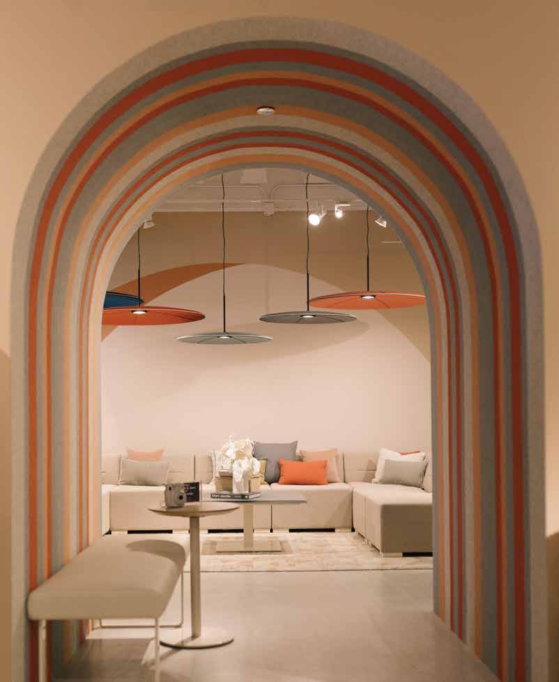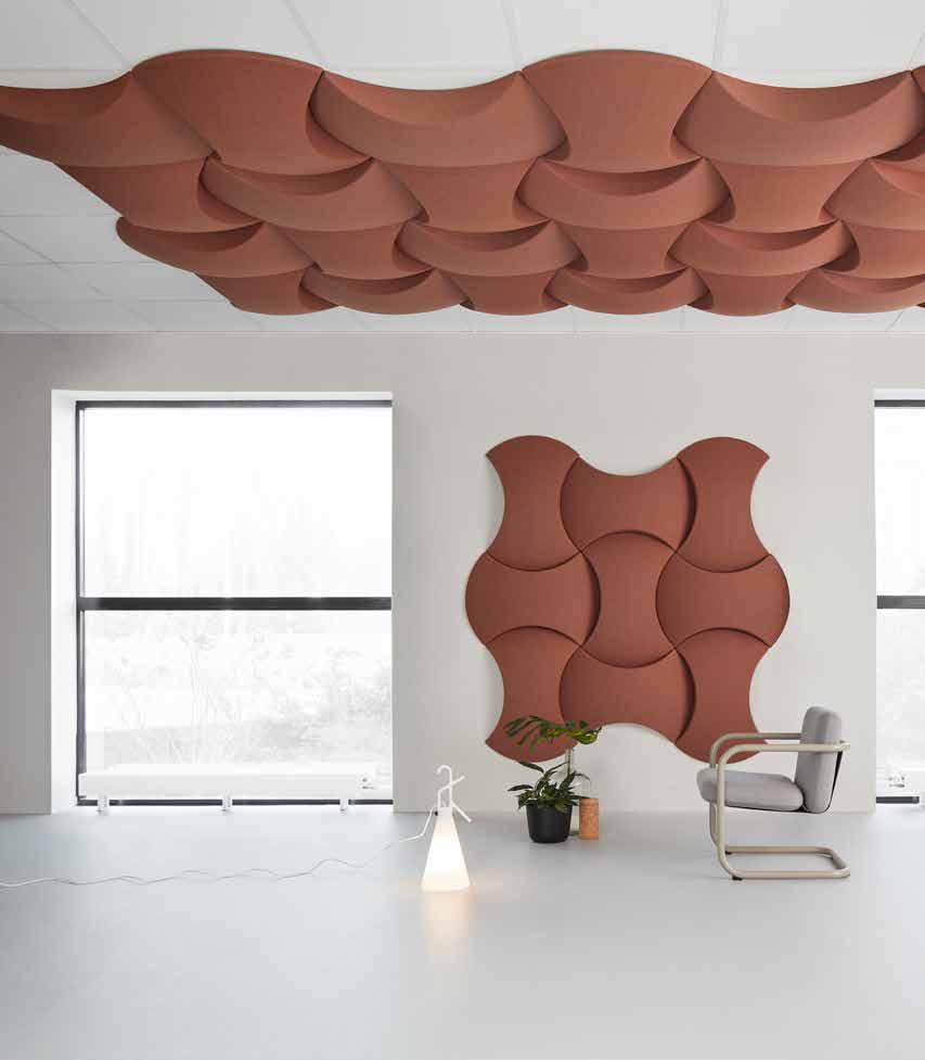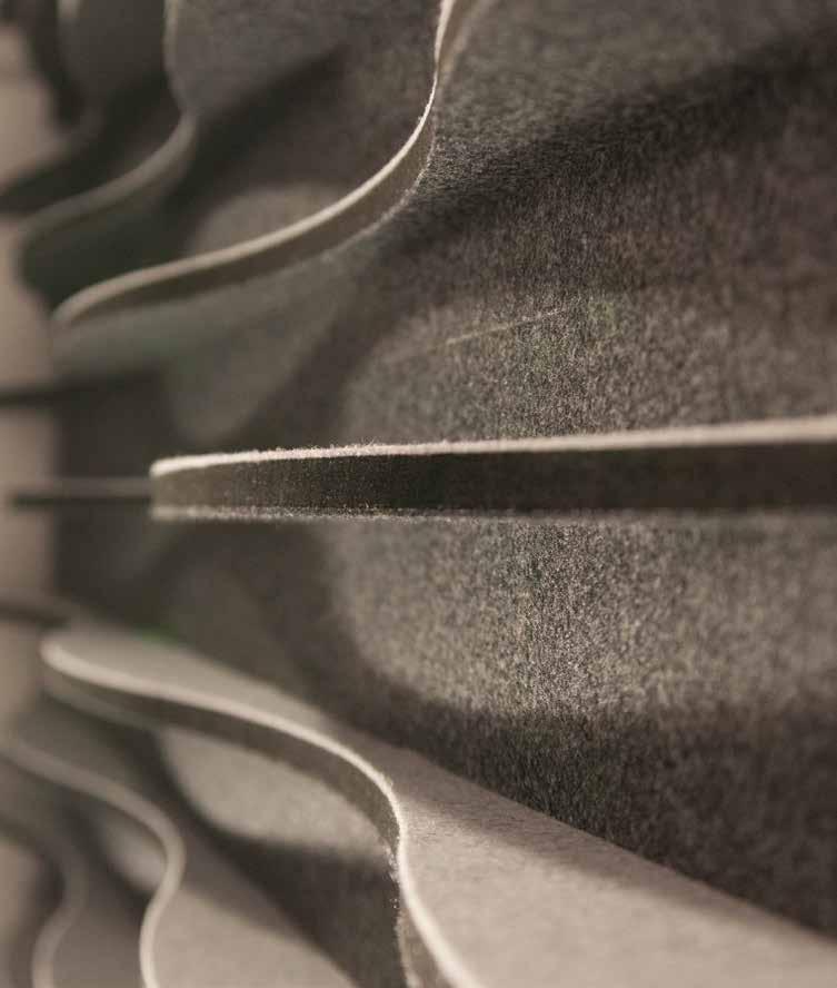Scala XL is an enlarged version of Anya Sebton’s influential soundabsorbent Scala. Scala XL is developed to improve the soundscape in large and noisy spaces such as assembly halls, auditoriums, lobbies, and shopping malls. Scala XL’s interplay of shape and material has a powerful sound-absorbing effect. The increase of size not only amplifies its acoustic capacity, but also affects its aesthetic qualities. Scala XL has a bold, sculptural appearance, inspired by arched roofs and columns.