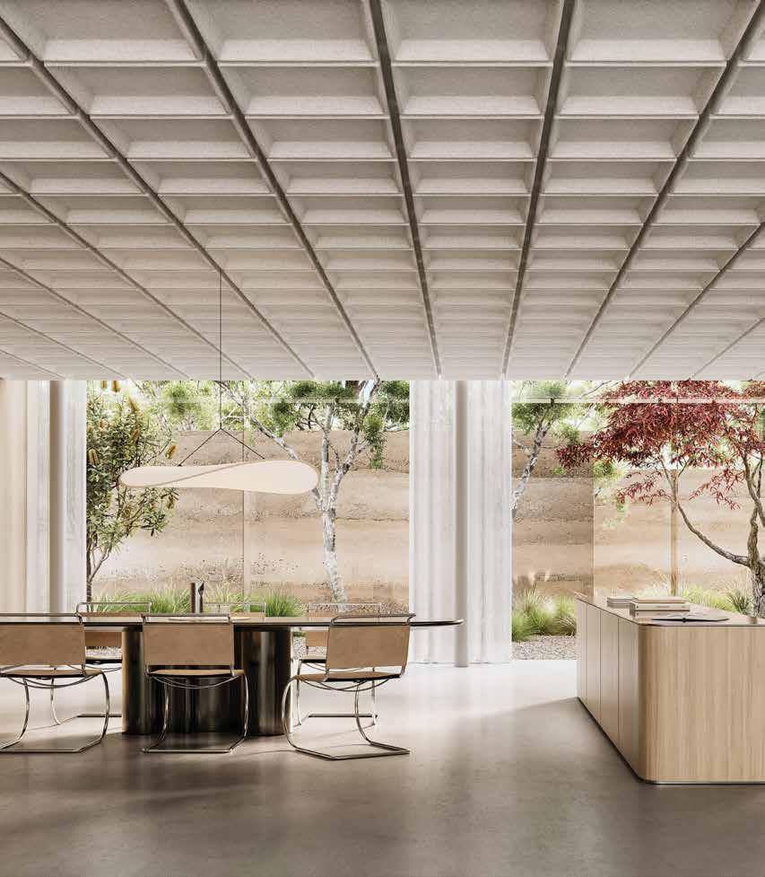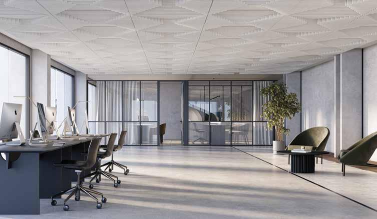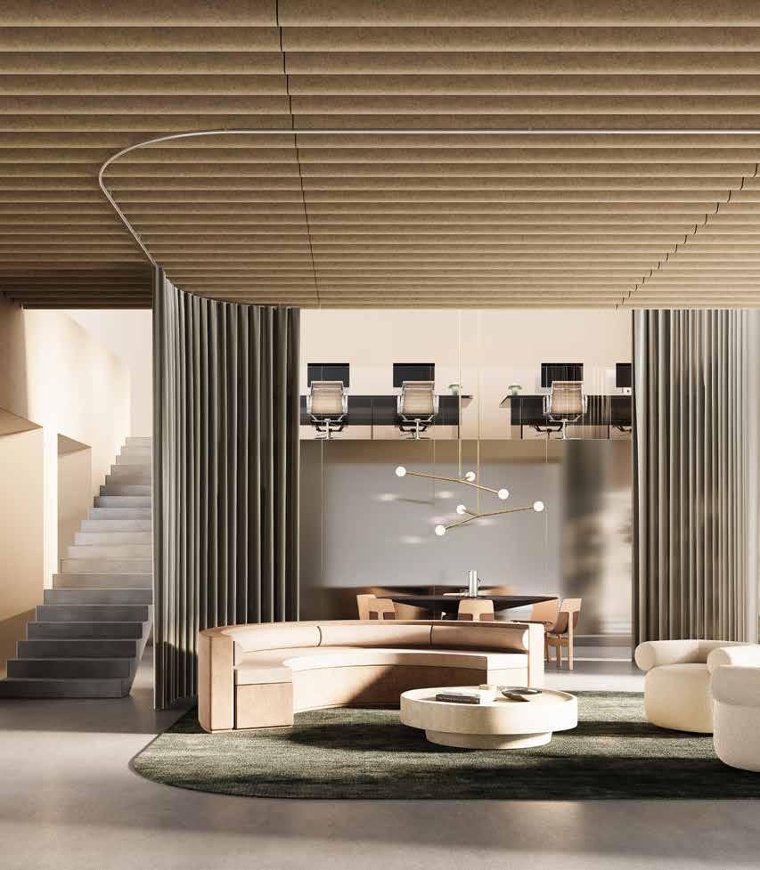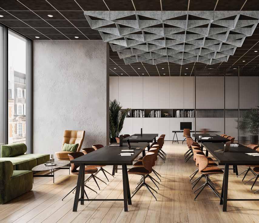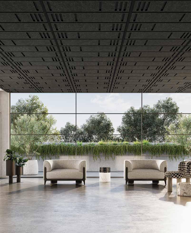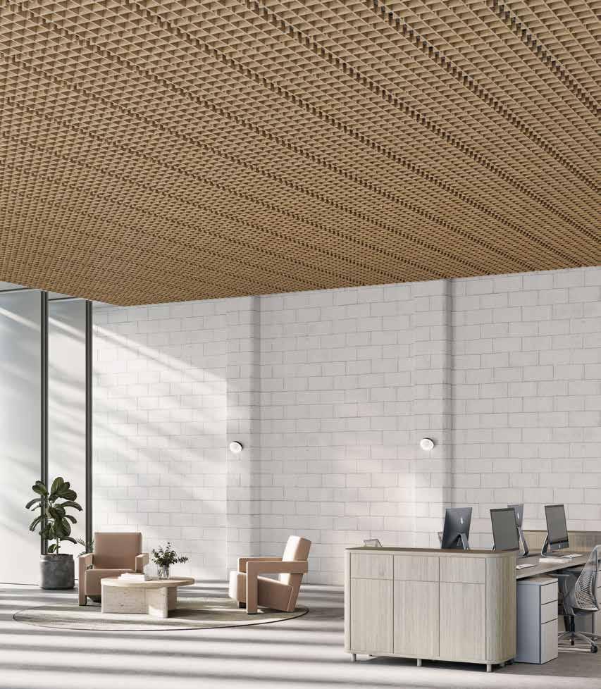 That’s where the Unika Vaev Acoustical Collection comes in. Our solutions for ceilings, walls, floors, and space division don’t just perform, they elevate interiors. Designed with both function and style in mind, they deliver superior sound absorption and diffusion, transforming any environment.